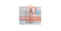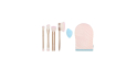 This set includes 4 face and body brushes, a makeup sponge and a mitt for applying self-tanner.