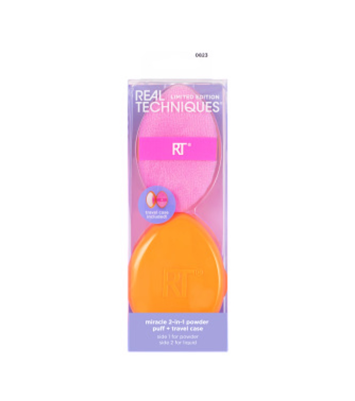 Real Techniques Miracle 2-in-1 Powder Puff is a multi-purpose, dual-textured makeup puff designed to work with powders, liquids, and creams for a smooth, perfectly set foundation.