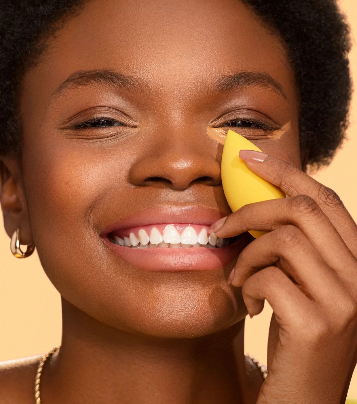 The Miracle Concealer Sponge works best with liquid and cream concealers.