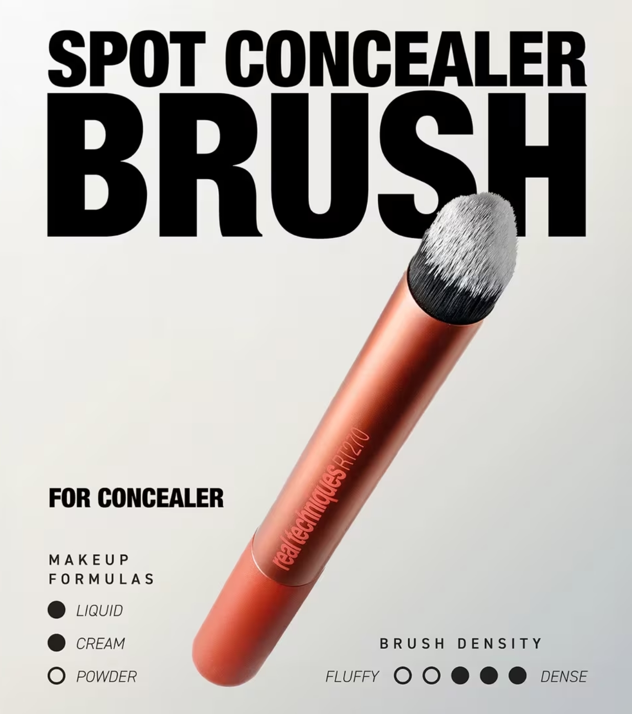 The Spot Concealer Brush from Real Techniques is the perfect tool for precise application of concealer, ideal for covering localized imperfections with a uniform and natural finish.