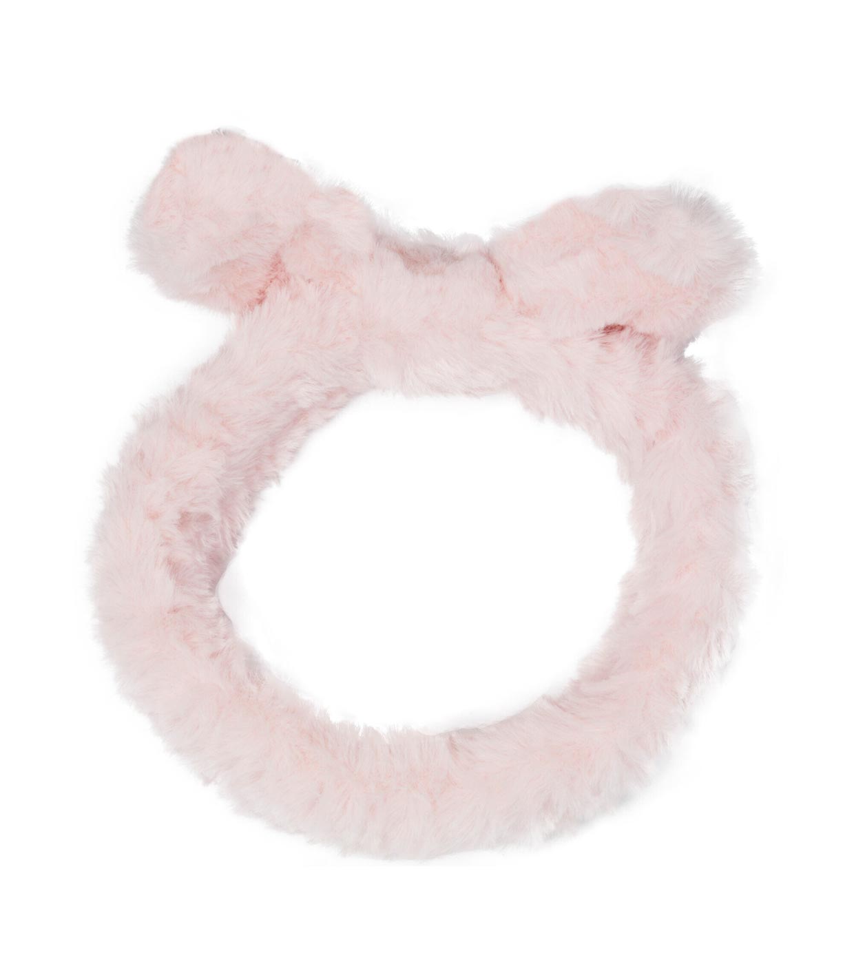 A skincare headband with soft and fluffy light pink design, helping you experience spa vibes at home.