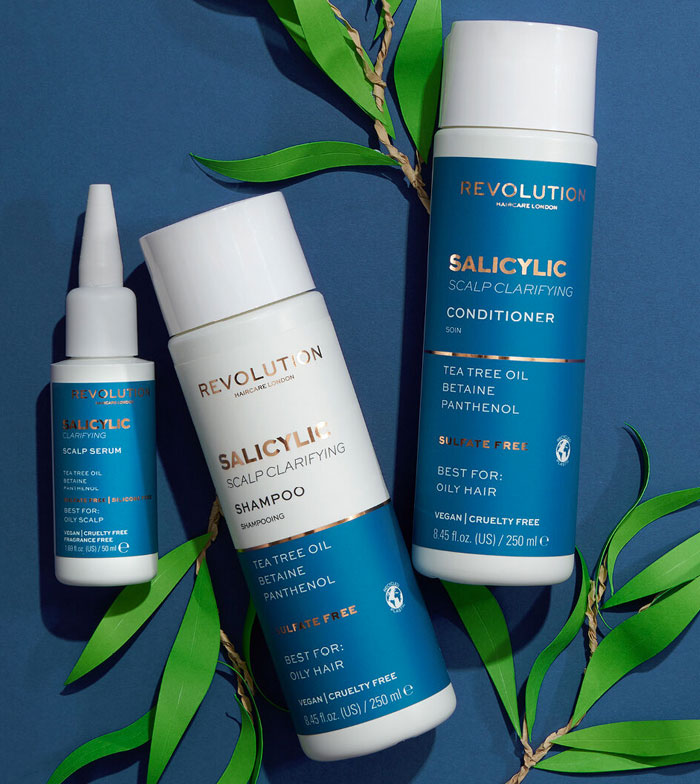 Salicylic acid exfoliates and removes oil from the hair, while tea tree oil refreshes, leaving it clean and purified.