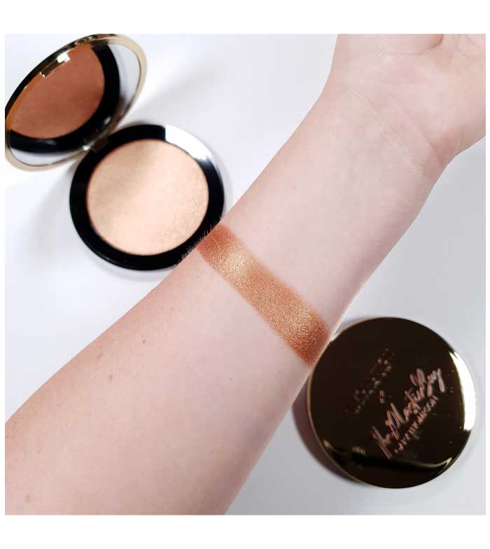 This shimmering gold-tone pressed highlighter provides a sophisticated wet-look finish.