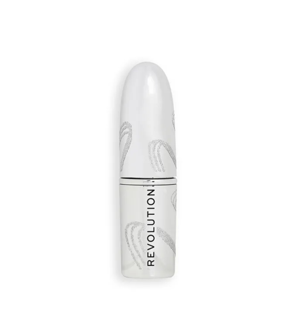 Stand out with this glitter lipstick from Revolution's Revolution collection , featuring a clear shine enriched with star-shaped pigments and a three-dimensional glitter coating for irresistible, eye-catching lips.
