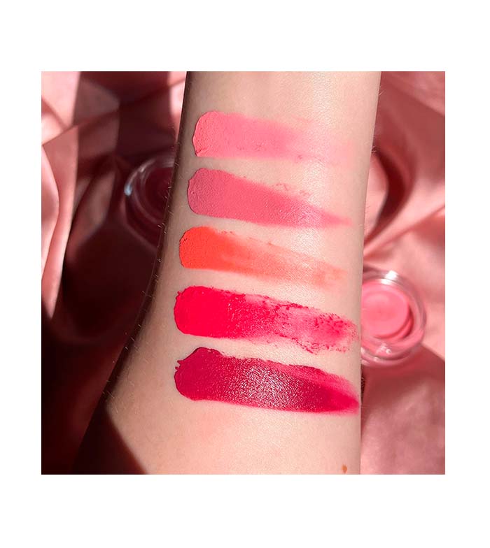 The formula of this mousse blush is buildable, so you can achieve from a more natural result to a much more intense one.