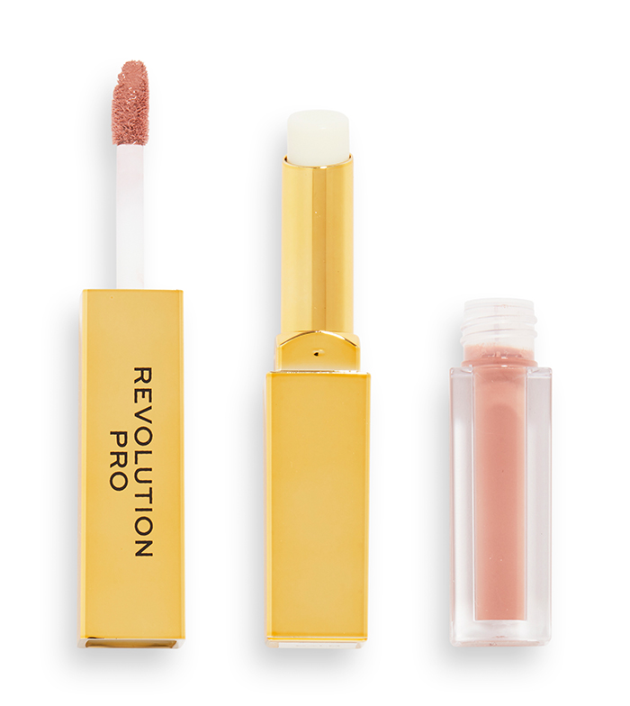 The liquid lipstick will give you a matte finish while the vitamin E-enriched balm will set the color and keep your lips hydrated without being sticky.