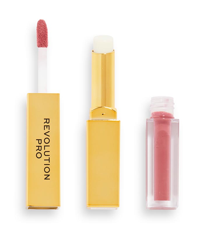 The liquid lipstick will give you a matte finish while the vitamin E-enriched balm will set the color and keep your lips hydrated without being sticky.