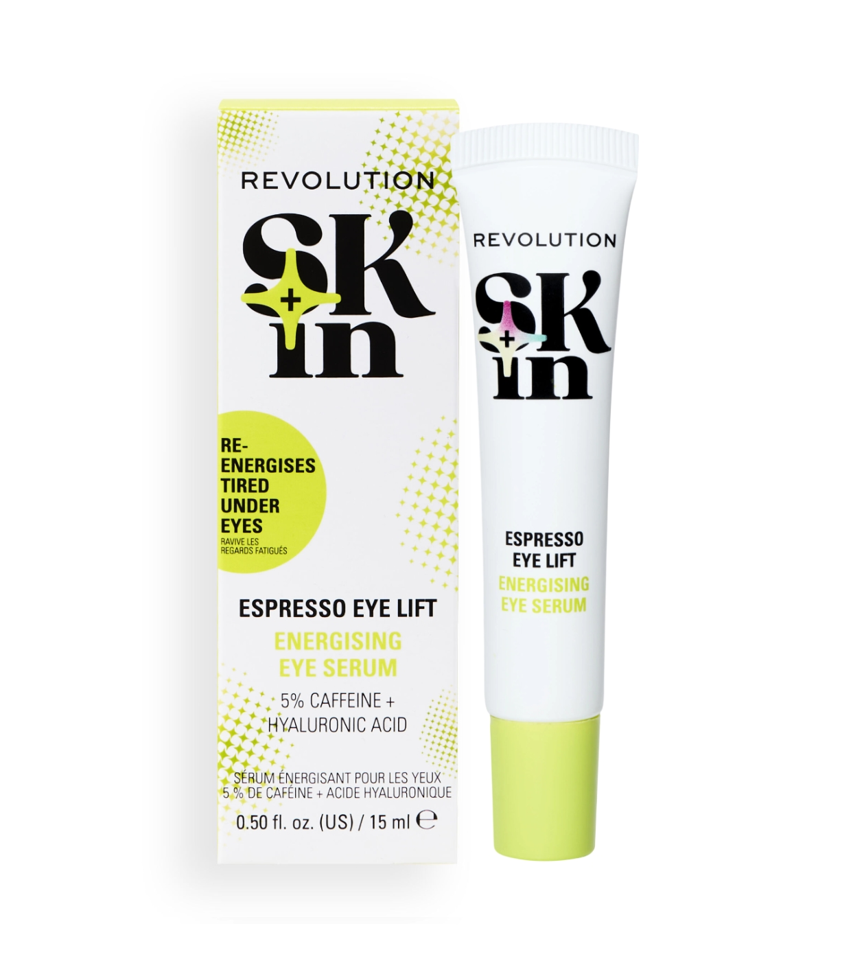 Say goodbye to tired eyes! This ultra-refreshing Espresso Eye Lift eye contour serum from Revolution Skin with a roller applicator helps reduce dark circles, puffiness and brighten the area for a rested and revitalized look.