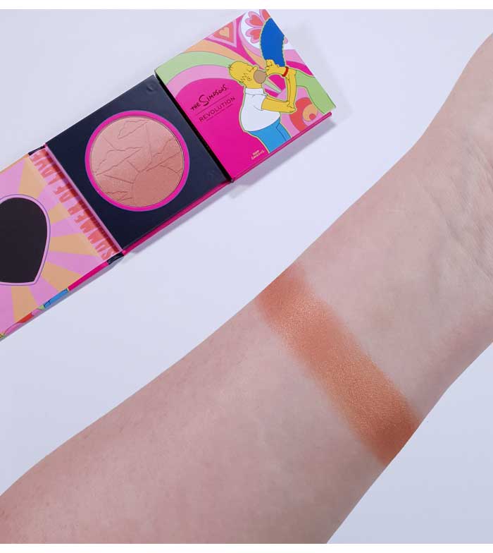 Get a perfect glow throughout the day thanks to the powder illuminator Ombre Highlighter The Simpsons Summer of Love x Revolution .