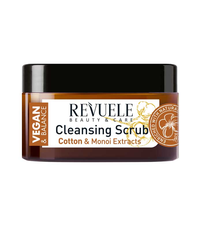 Vegan & Balance cleansing body scrub with cotton oil and Revuele monoi extract.
