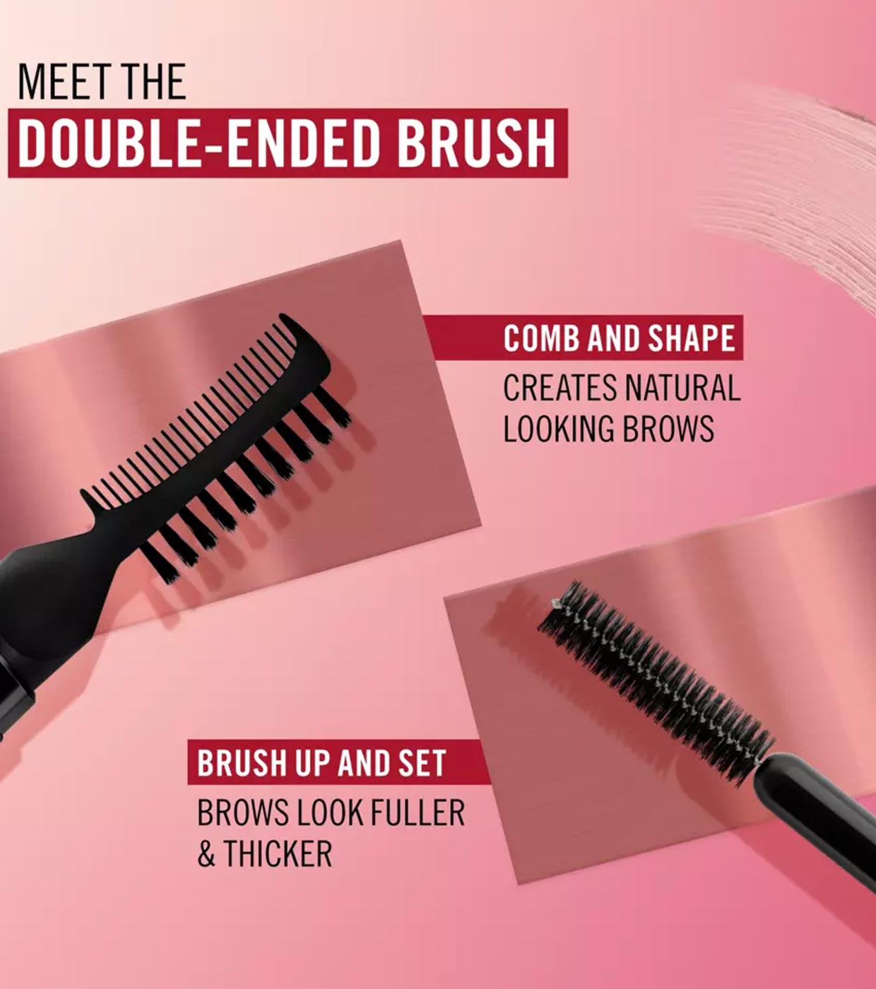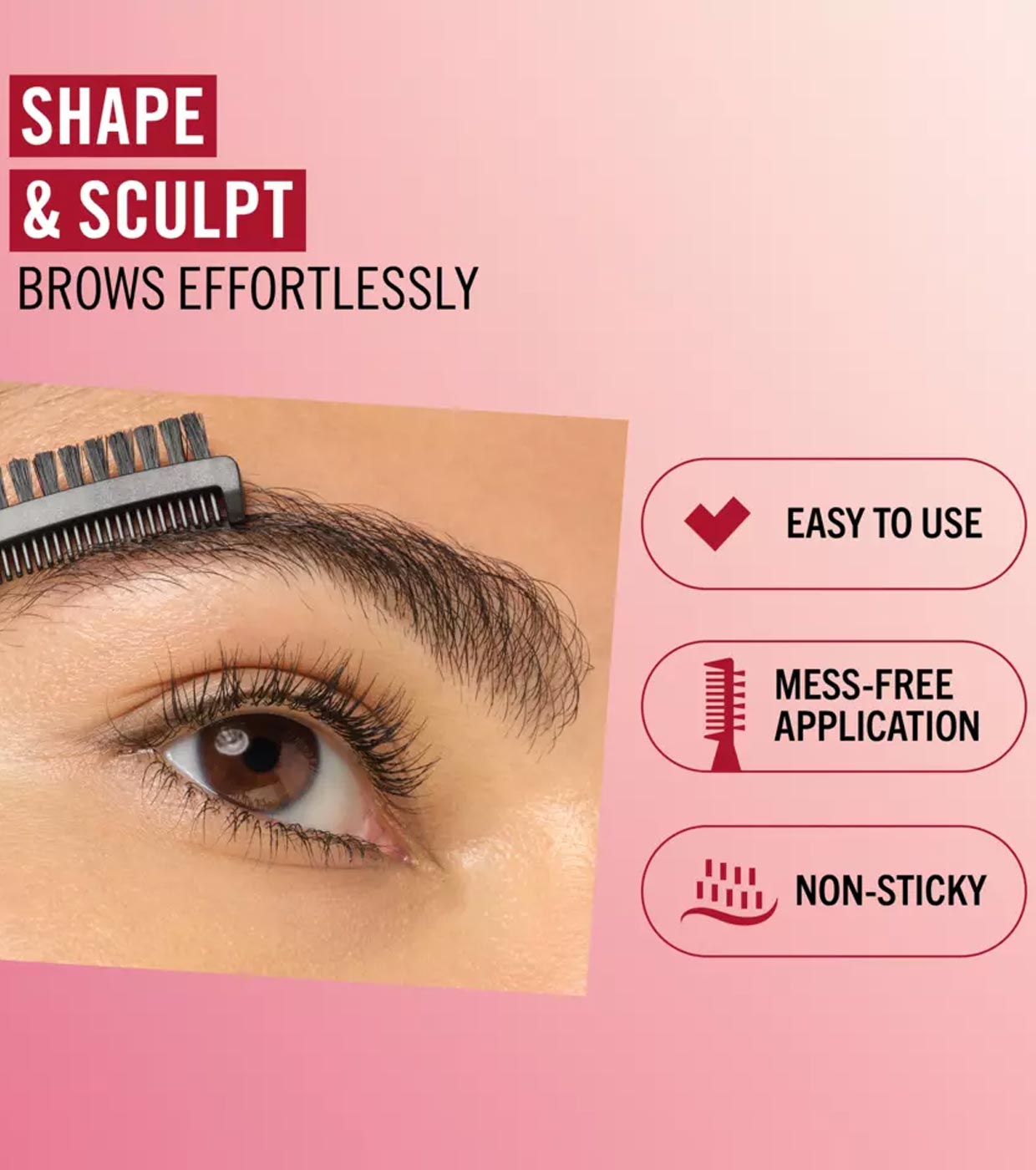 The shaping comb and brush sculpt brows evenly and ensure a non-sticky, mess-free application.
