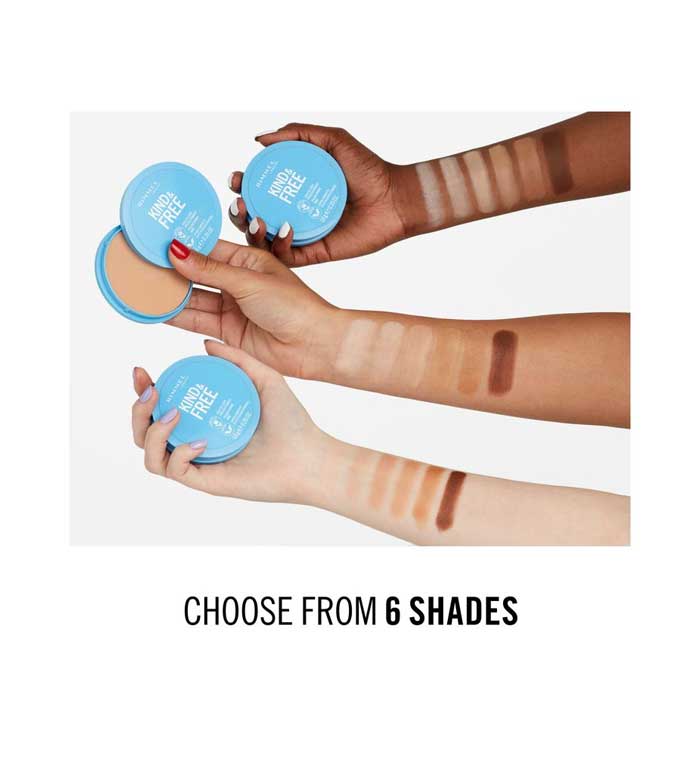 Compact powder Kind & Free™ by Rimmel London mattifying effect and light texture.
