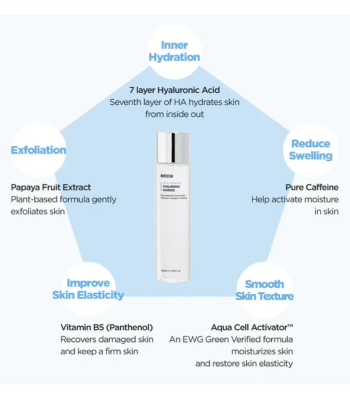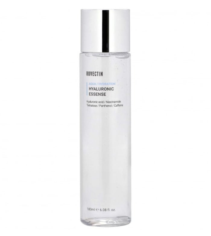 Rovectin's Aqua Hyaluronic Essence is an ultra-light essence that offers deep and immediate hydration, providing comfort, freshness, and vitality from the first application.