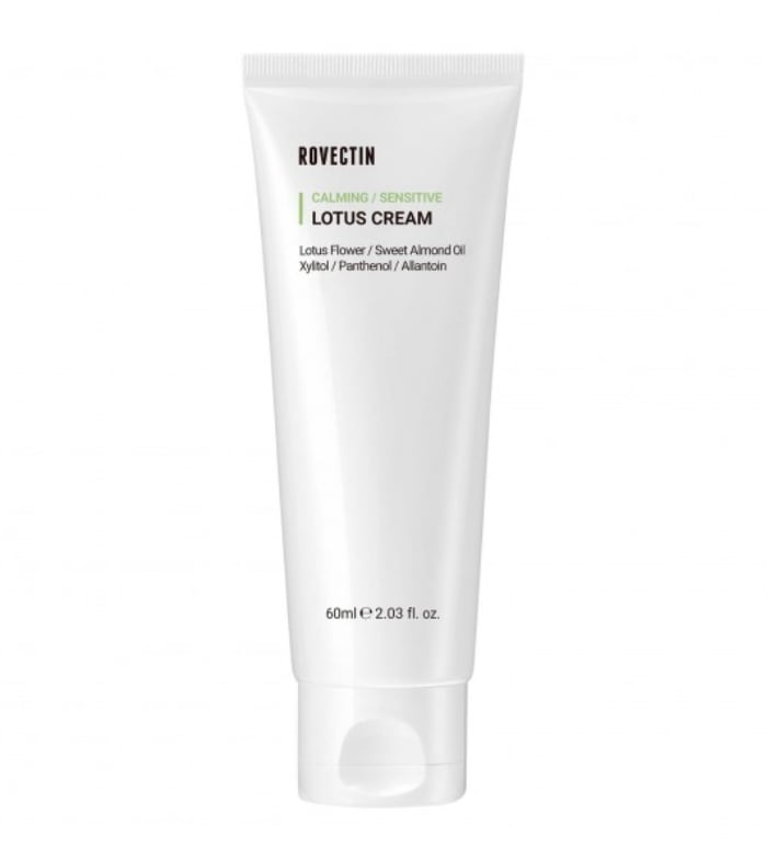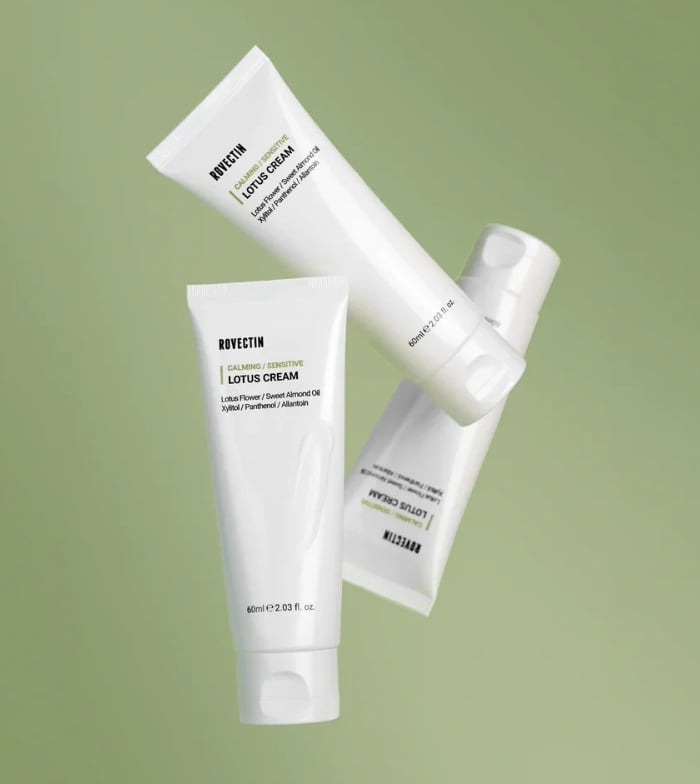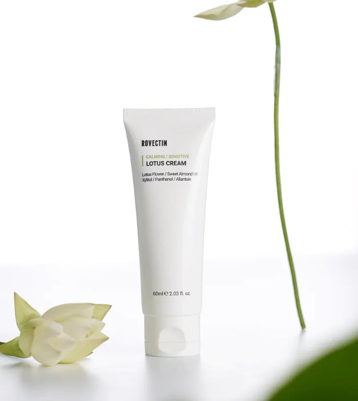 Rovectin's Calming Lotus Cream is a vegan face cream specially formulated for sensitive, dry, or reactive skin.