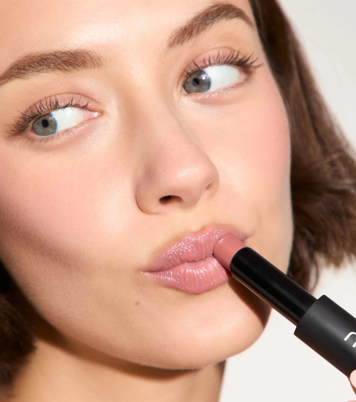 Enriched with jojoba oil, shea butter, and hyaluronic acid in different molecular weights, this lipstick offers deep, long-lasting hydration.