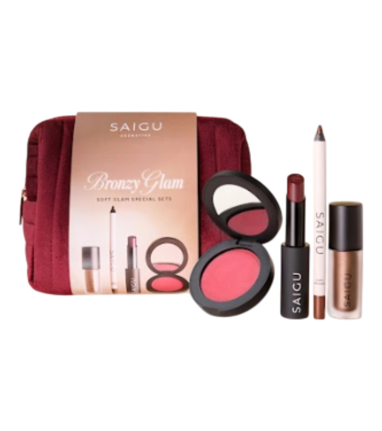 The Bronzy Glam Pack by Saigu Cosmetics combines the sweetness of the Cherry Girl style with a bronze touch that adds depth and elegance to the look.