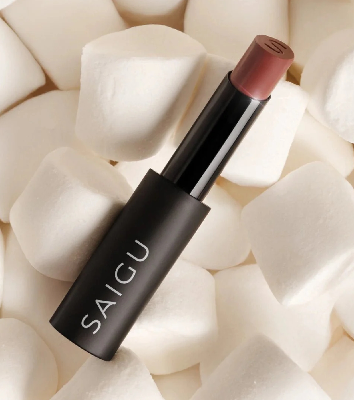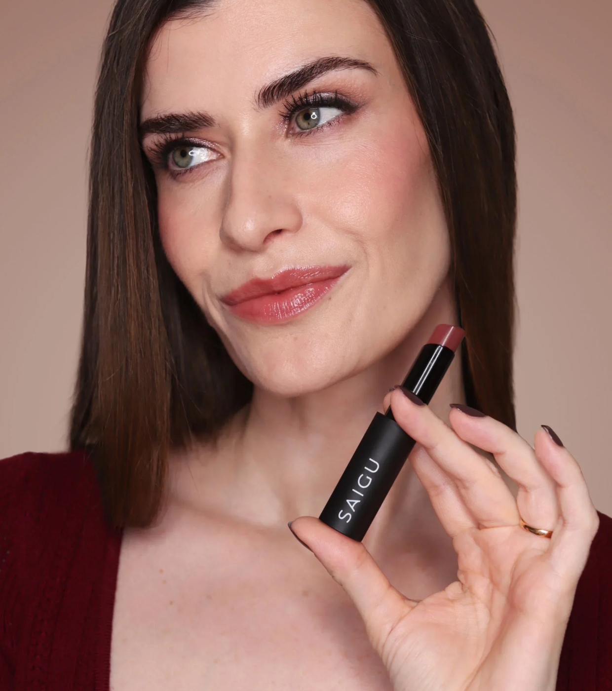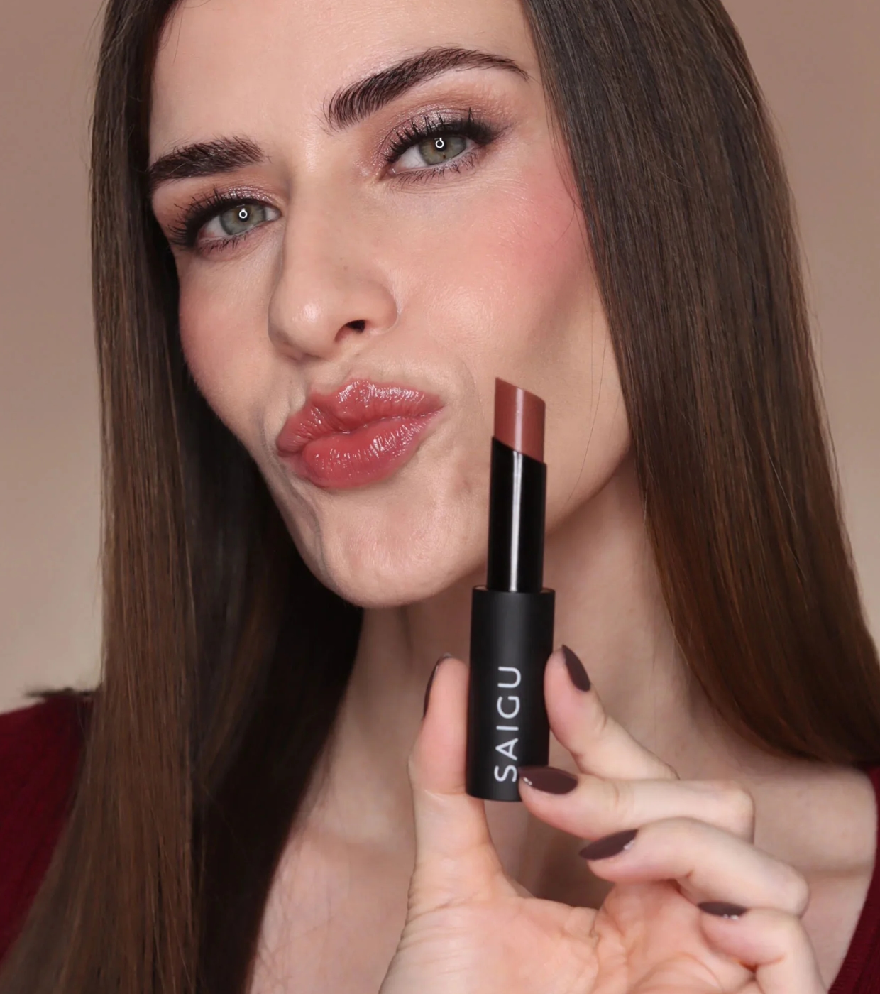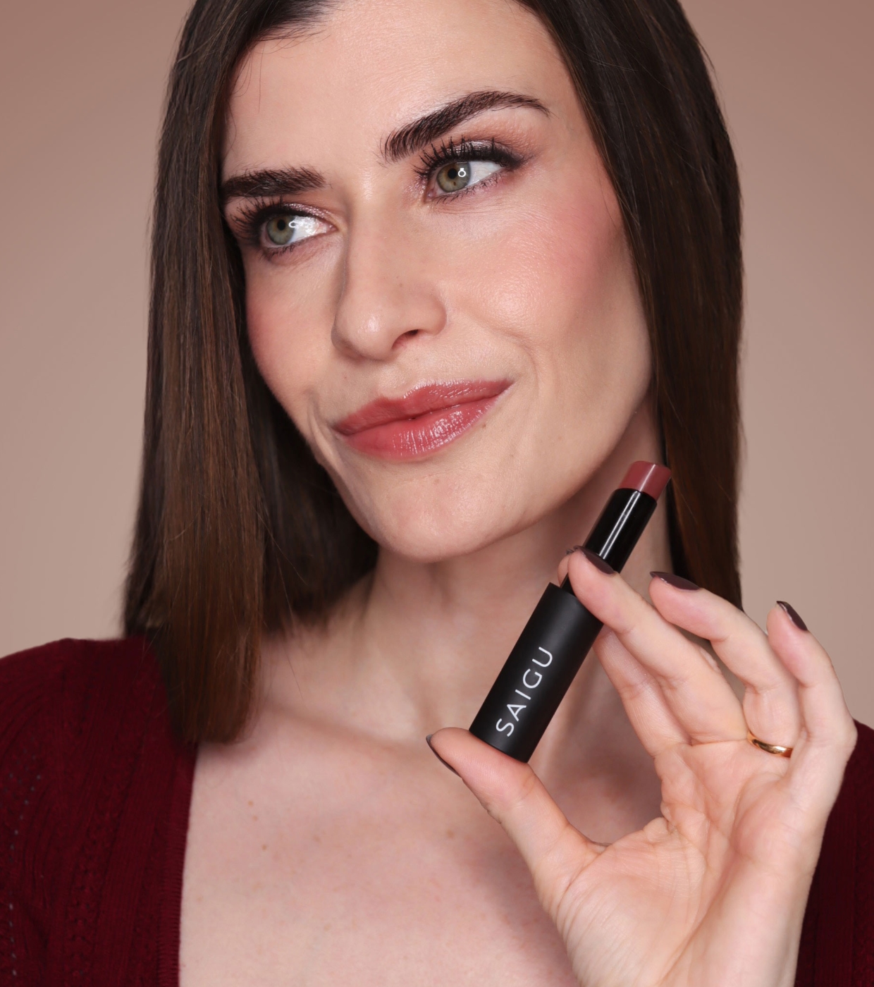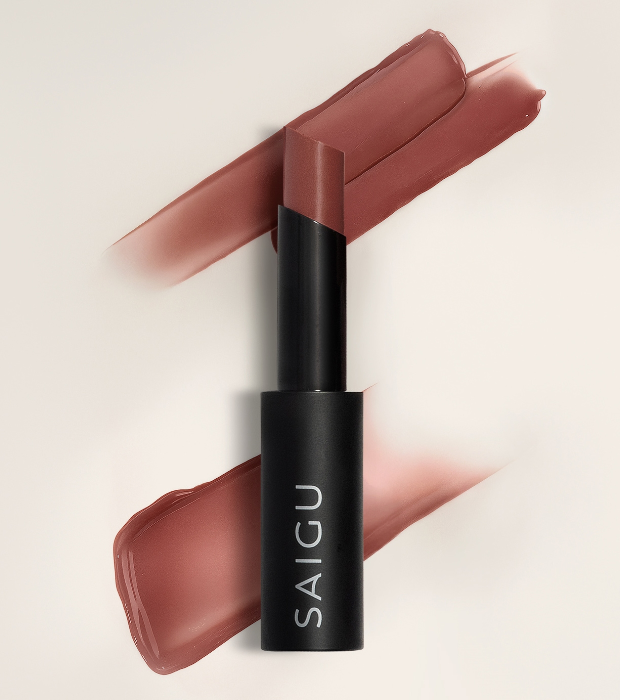 The Melting Glow Lipstick from Saigu Cosmetics combines lip care and color in a lipstick with a luminous and natural finish.
