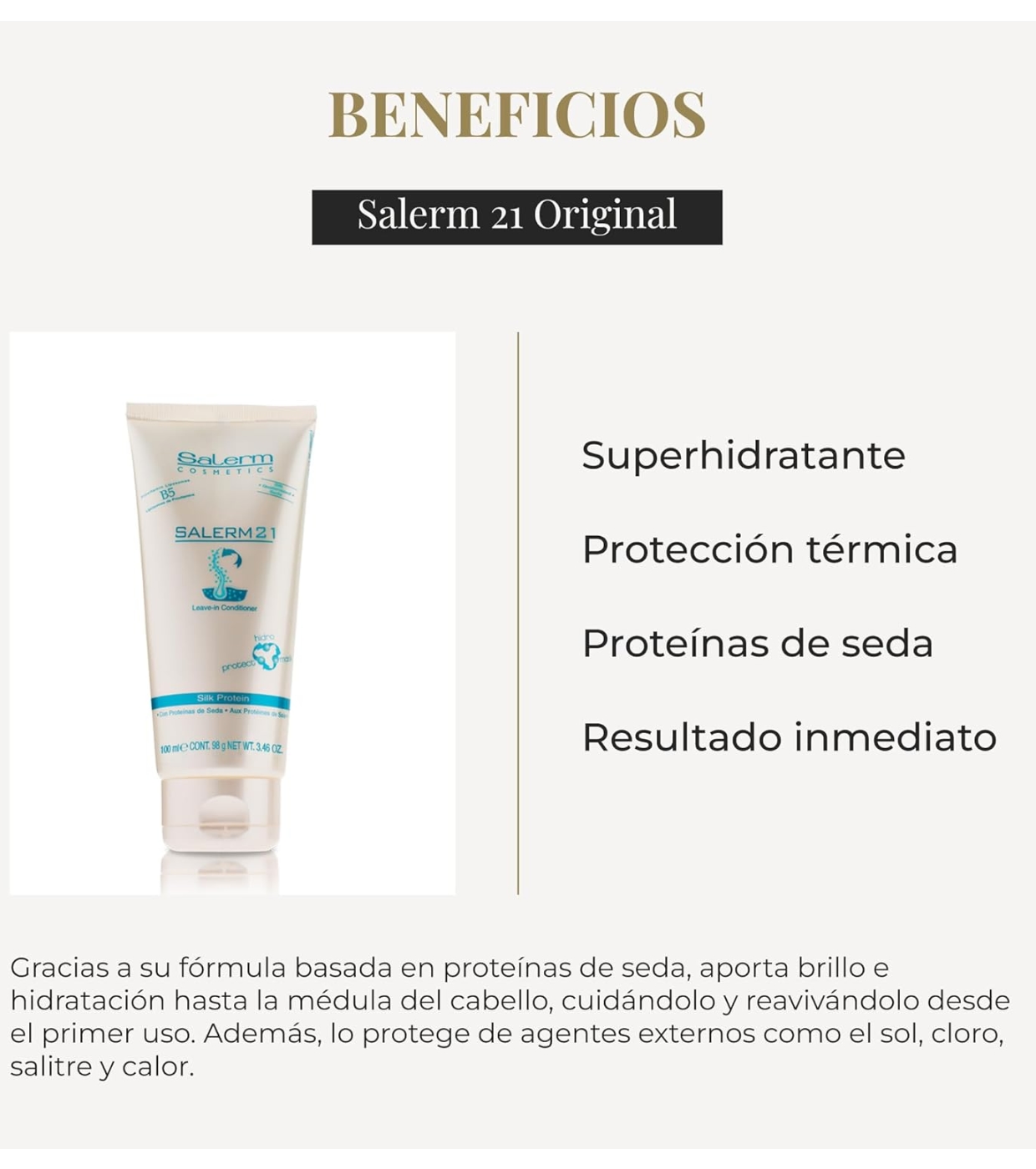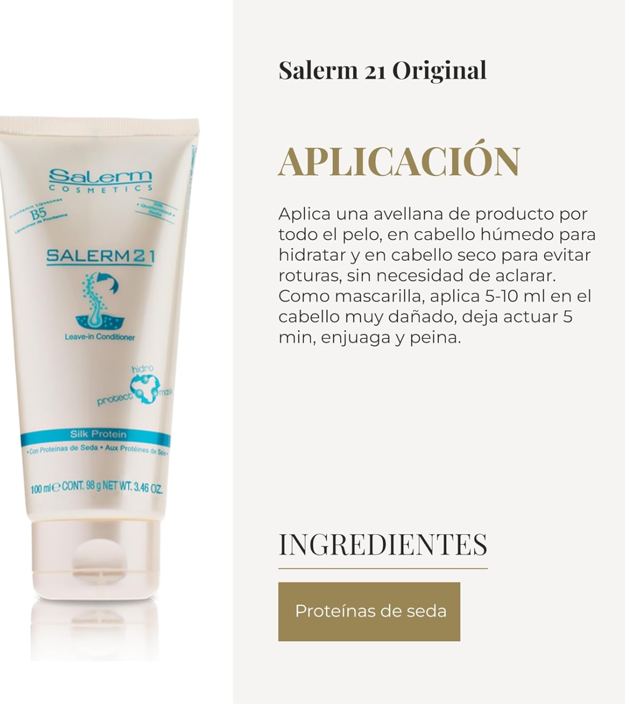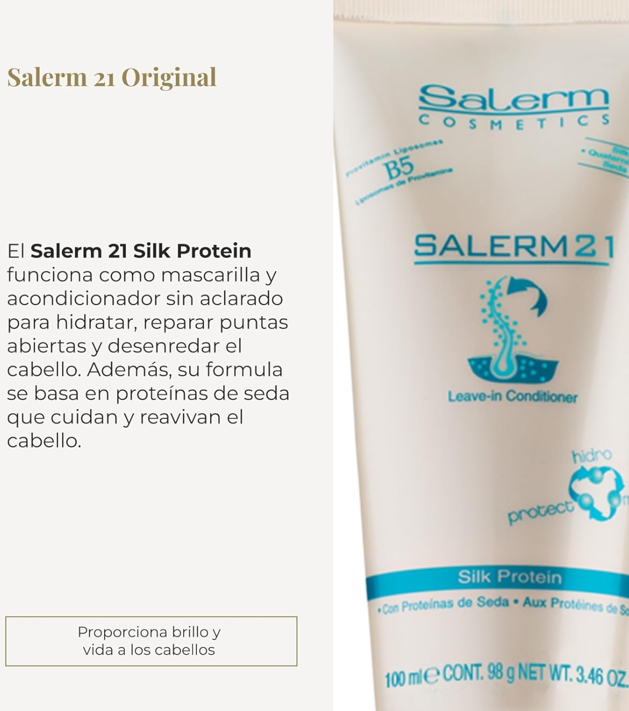 Salerm 21 Silk Protein Leave-in Conditioner Salerm 21 Silk Protein Leave-in Conditioner is a leave-in conditioner and mask that offers a complete solution for dry, damaged or dehydrated hair.