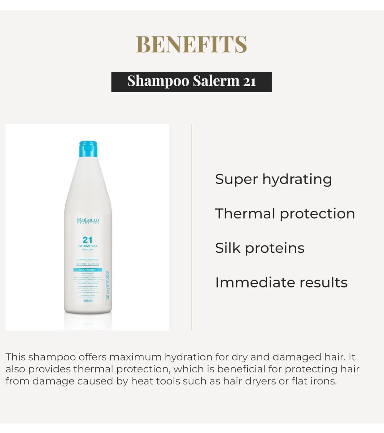 Salerm 21 Silk Protein shampoo by Salerm is the perfect choice for those looking for softer, shinier, healthier hair from the first wash.
