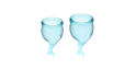 Satisfyer Feel Secure menstrual cup kit in light blue.