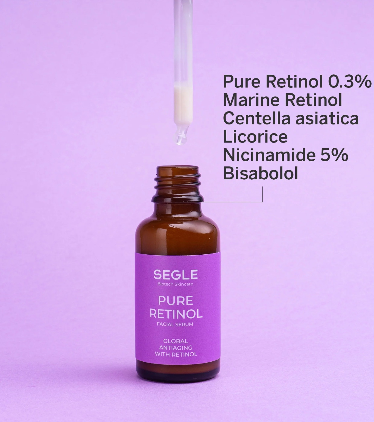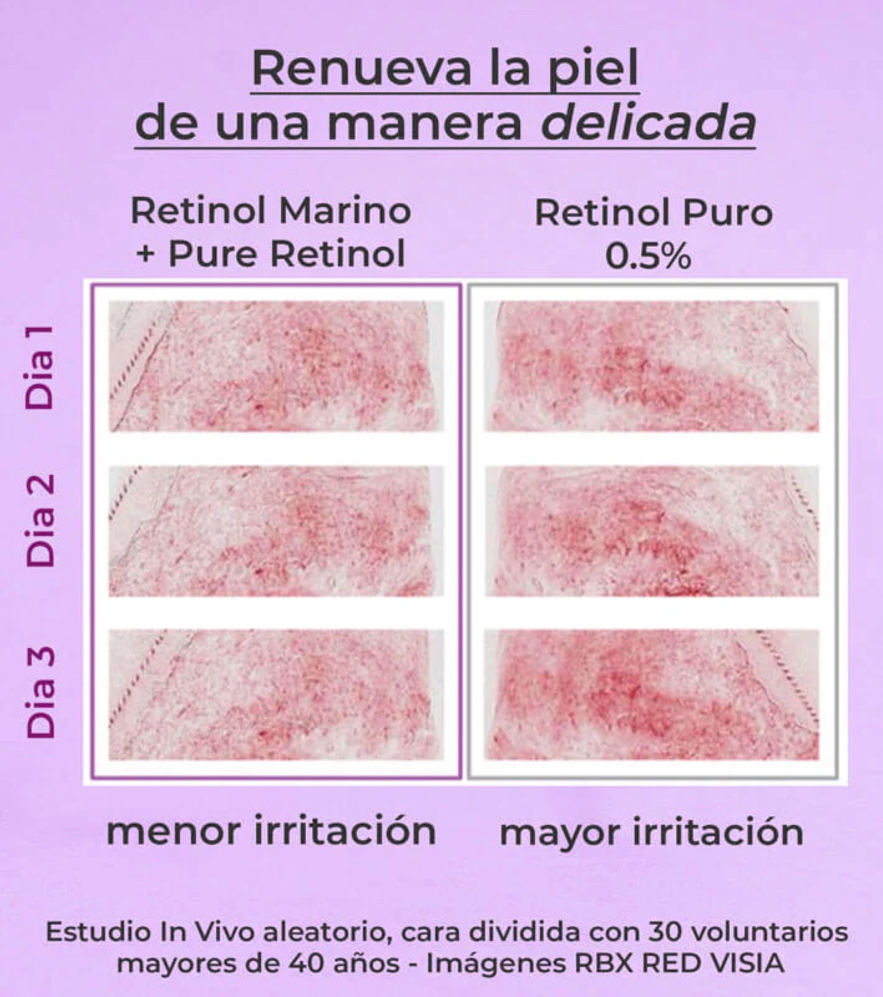 - Pure Retinol: night serum more effective than 0.5% pure retinol. With pure retinol at 0.3% + the first marine retinol at 1% that in synergy effectively combat all signs of aging.