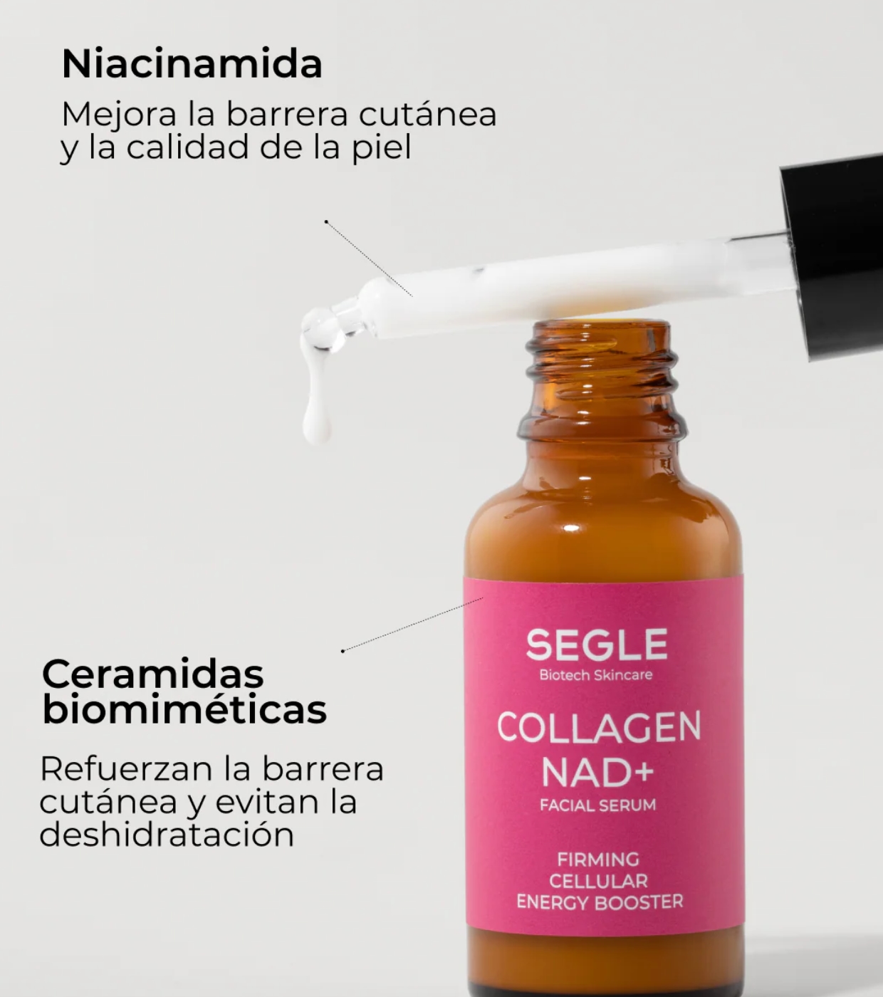 The Collagen NAD+ serum from SEGLE is an advanced smart firming treatment that reactivates collagen and cellular energy while strengthening the barrier function and boosting skin longevity.