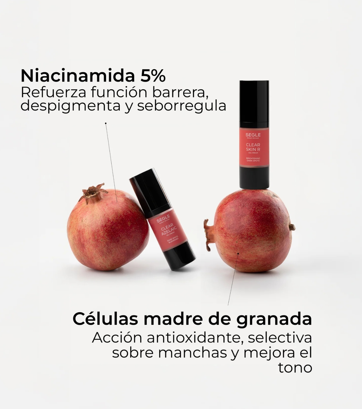 Gel Crema Clear Azelaic: AQUA, PROPYLENE GLYCOL, AZELAIC ACID, DIMETHICONE, SODIUM HYDROXIDE, TRANEXAMIC ACID, 3-O-ETHYL ASCORBIC ACID, SIMMONDSIA CHINENSIS SEED OIL, TOCOPHERYL ACETATE, ACETYL GLUCOSAMINE, GLYCYRRHETINIC ACID, SODIUM HYALURONATE, SODIUM HYALURONATE CROSSPOLYMER, HYDROLYZED SODIUM HYALURONATE, SODIUM ACETYLATED HYALURONATE, CERAMIDE NP, CERAMIDE AP, CHOLESTEROL, TETRAACETYLPHYTOSPHINGOSINE, GLYCOSPHINGOLIPIDS, PUNICA GRANATUM SEED CELL CULTURE LYSATE, SPHINGOMONAS FERMENT EXTRACT, GLYCERIN, DISODIUM EDTA, CAPRYLIC/CAPRIC TRIGLYCERIDE, MALTODEXTRIN, HYDROGENATED LECITHIN, TETRAMETHYL ACETYL-OCTAHYDRONAPHTHALENES, PENTYLENE GLYCOL, GLYCERYL STEARATE, STEARIC ACID, 1,2-HEXANEDIOL, XANTHAN GUM, CETEARYL ALCOHOL, HEXAMETHYLINDANOPYRAN, TRIMETHYLBENZENEPROPANOL, CITRUS LIMON PEEL OIL, ETHYLHEXYLGLYCERIN, LIMONENE, PARFUM.
