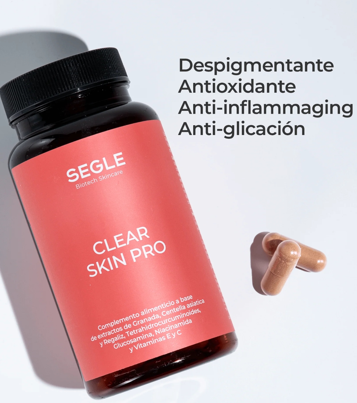Discover this set of 3 Clear Skin Pro food supplements from Segle depigmenting and antioxidant is formulated to improve the health of the skin and joints with a comprehensive anti-stain, anti-aging, antioxidant and anti-inflammatory action.