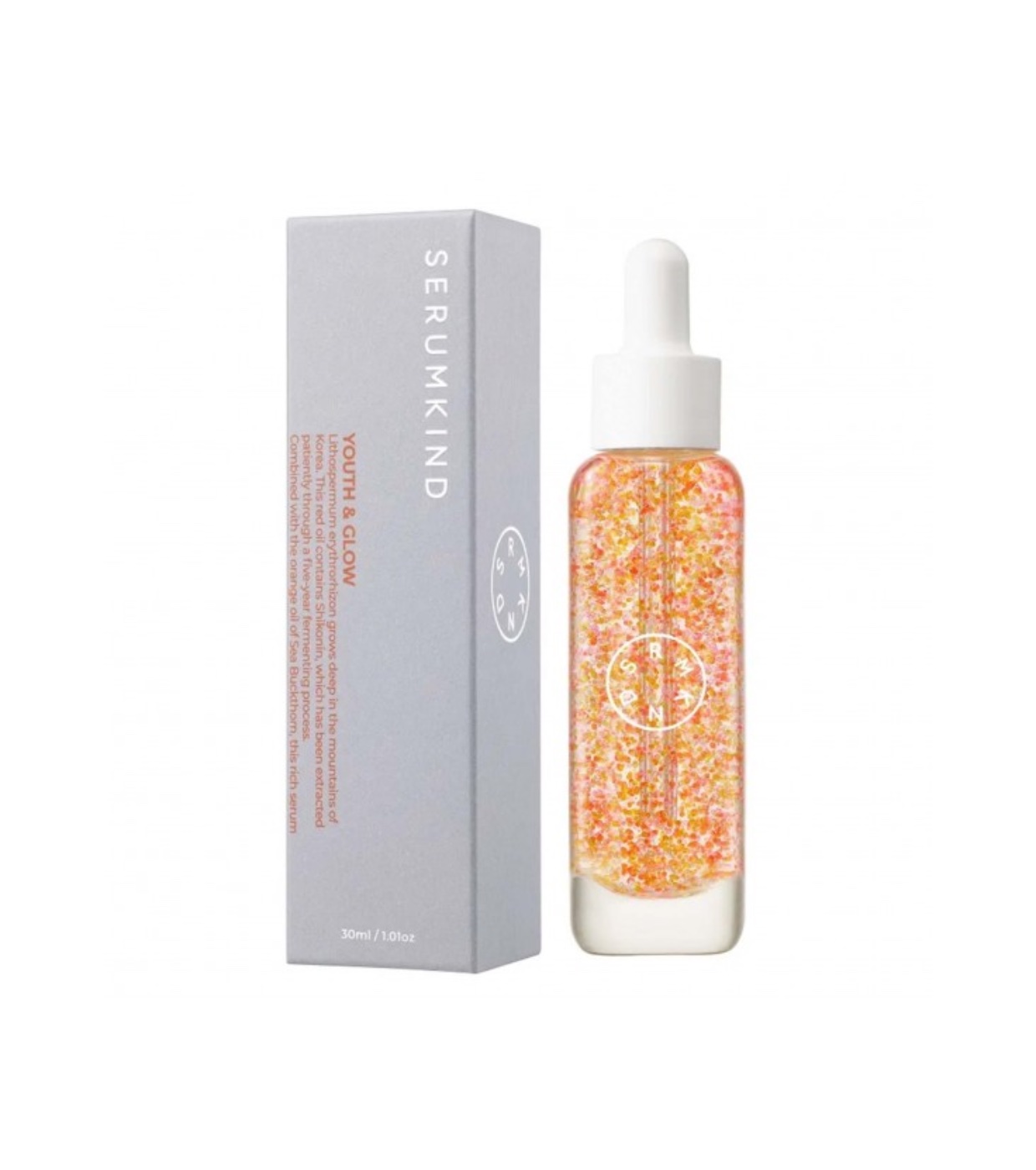 Revitalizing serum for mature and dull skin Youth & Glow by Serumkind, formulated with sea buckthorn oil and Shikonin oil, two natural ingredients with powerful anti-aging properties.