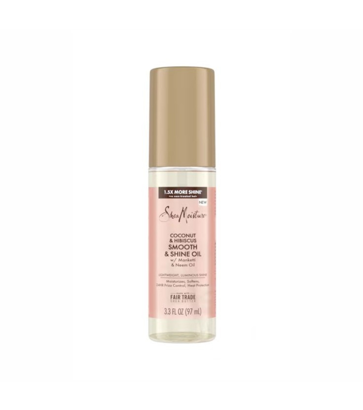 This multi-functional Smooth & Shine hair oil with Coconut and Hibiscus from Shea Moisture is designed to increase hydration by 4x, provide 1.5x more shine without weighing down hair, and control frizz and humidity for 24 hours.