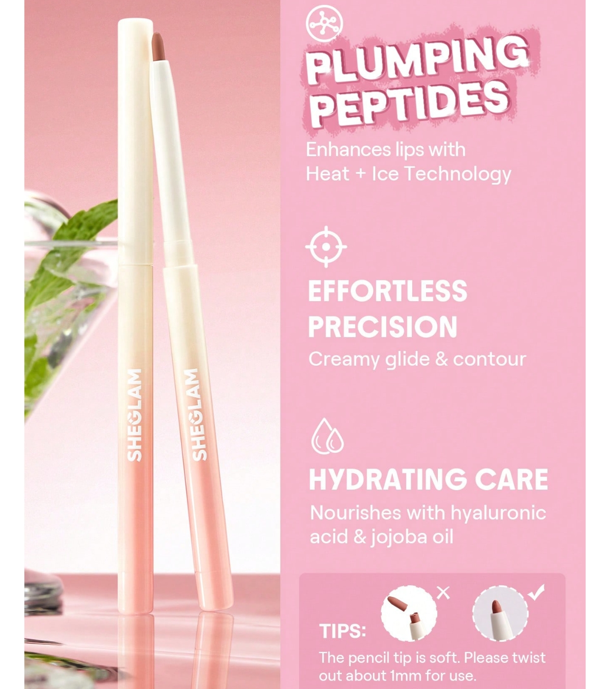 Define, enhance and perfect your lips with this high-precision silky SHEGLAM lip liner , designed to achieve a flawless finish with every application.