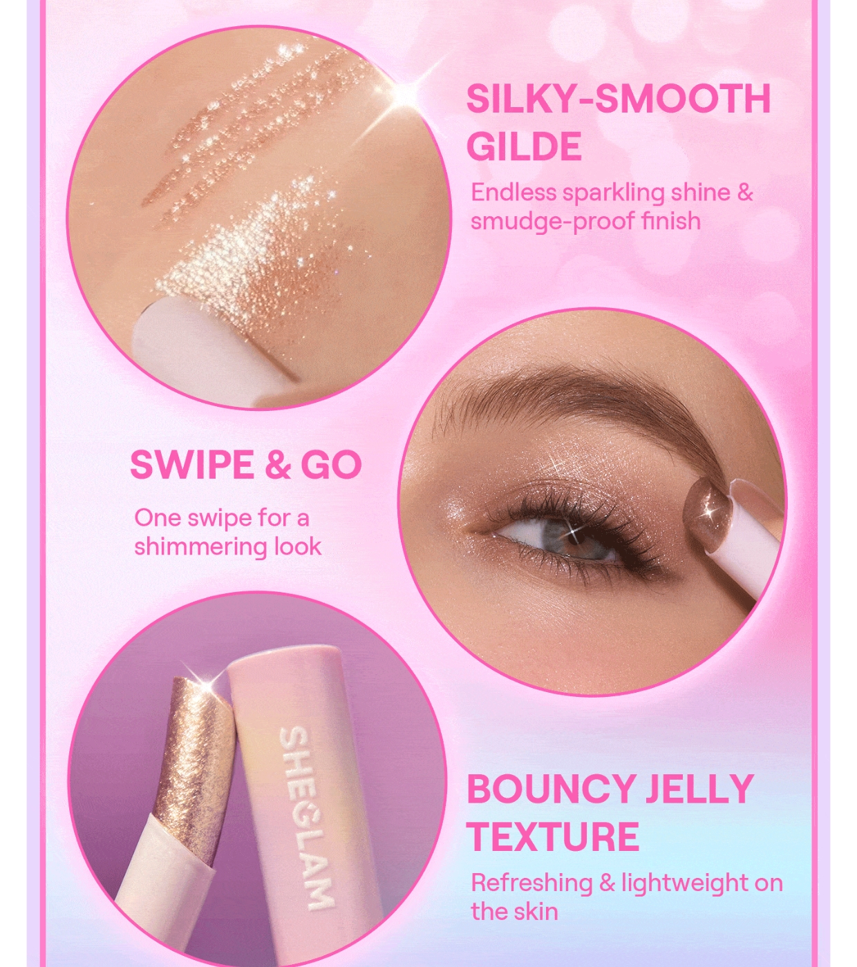 Turn up the heat and dazzle with the Crystal Jelly eyeshadow from SHEGLAM , a highlighter stick that combines water and glitter pearls to create a wet, lightweight, and ultra-luminous finish in just one swipe.