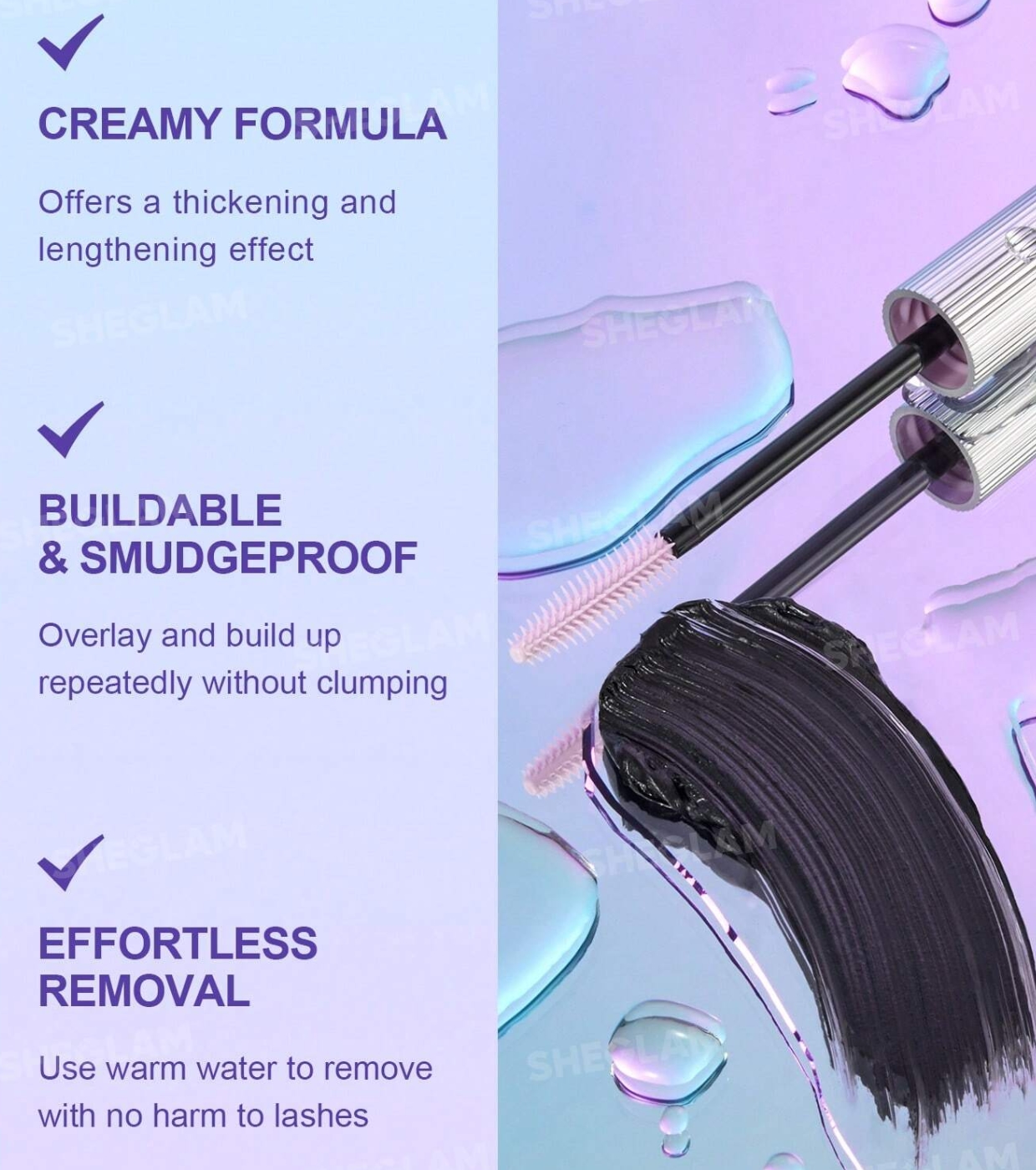 Its creamy, silky, and lightweight formula is buildable, allowing you to create intensity without caking. It's also ultra-long-lasting and stain-resistant, yet washes off easily with warm water for convenient, effortless cleanup.
