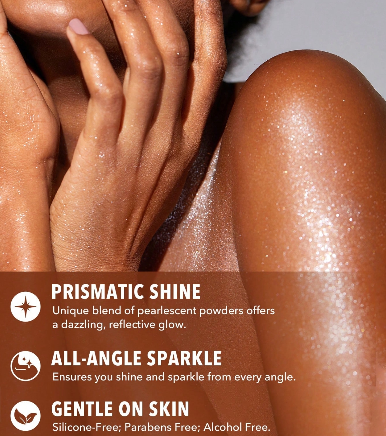 Formulated with a combination of pearlescent powders of different sizes, it creates a prism-like reflective effect that captures light and leaves a luminous, multidimensional finish.