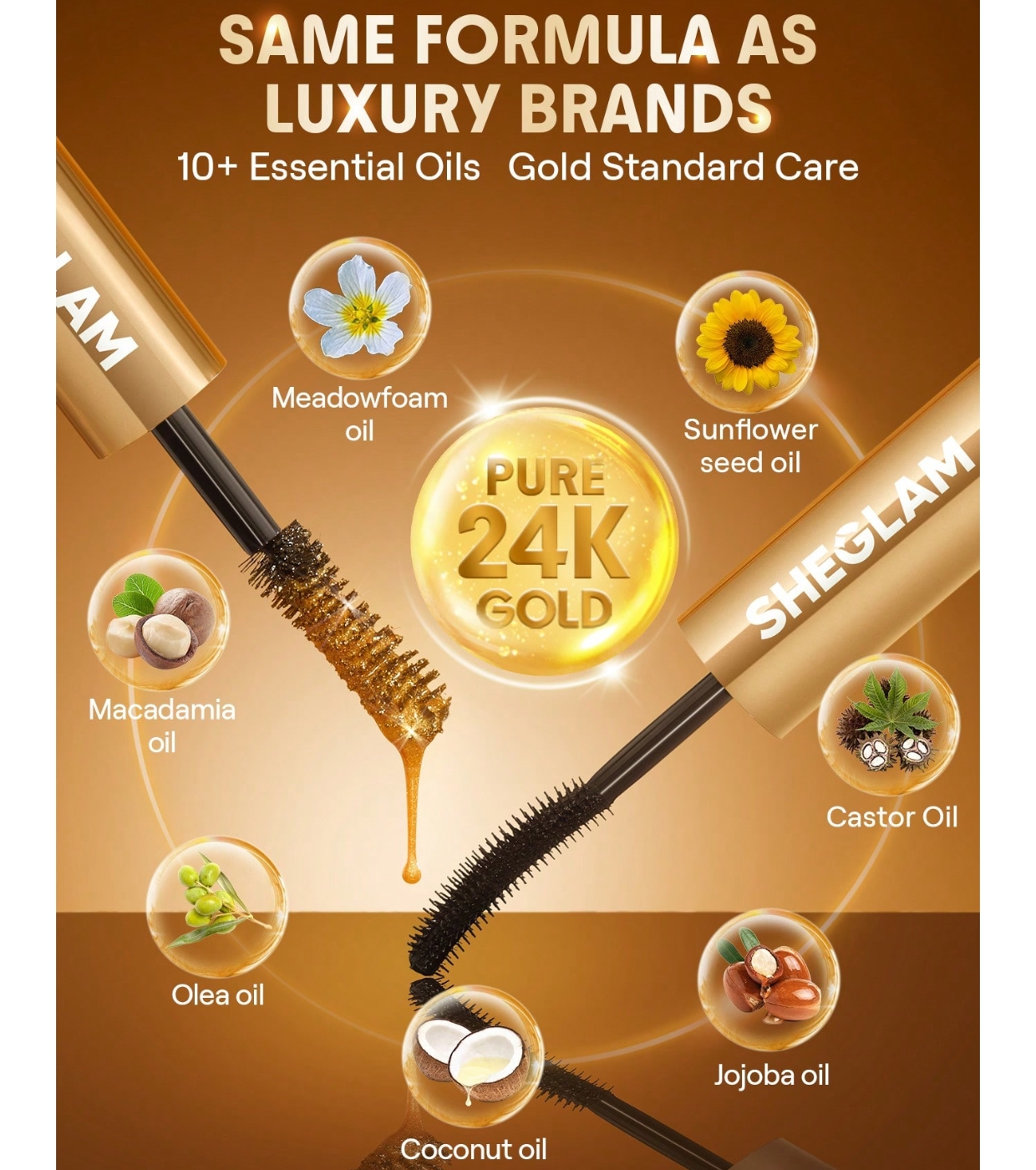 Elevate your look with the All in One 24K mascara from SHEGLAM , an exclusive formula enriched with authentic 24K gold and a powerful combination of nourishing ingredients.