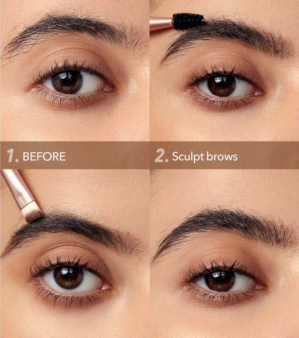With the help of an angled brush, you can fill, define and shape your eyebrows with precision, creating anything from a natural finish to a more structured and powerful look.