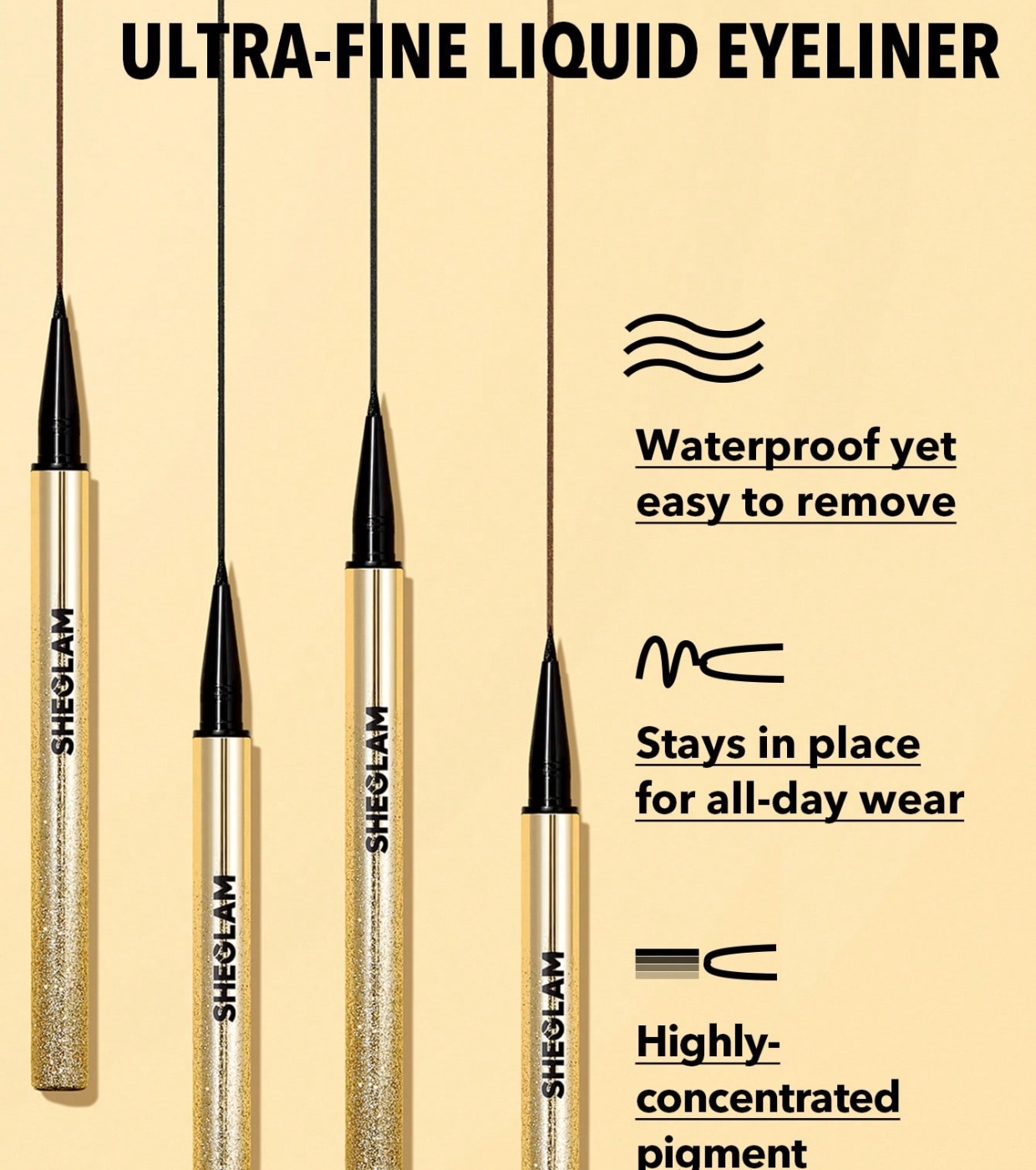 SHEGLAM 's Line & Define Waterproof Liquid Eyeliner is a bestseller for a reason: its long-lasting waterproof formula stays put all day, resisting smudging and transfer without losing intensity.