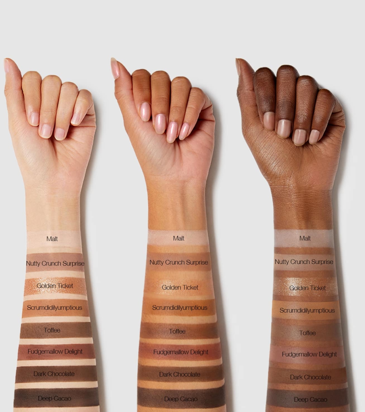 SCRUMDIDILYUMPTIOUS: MICA, TALC, SILICA, CAPRYLIC/CAPRIC TRIGLYCERIDE, NYLON-12, DIISOSTEARYL MALATE, ALUMINUM STARCH OCTENYLSUCCINATE, BORON NITRIDE, KAOLIN, DIMETHICONE, TRIETHOXYCAPRYLYLSILANE, PHENOXYETHANOL, FRAGRANCE/PARFUM, METHICONE, CAPRYLYL GLYCOL, ALUMINA, THEOBROMA CACAO (COCOA) SEED BUTTER/THEOBROMA CACAO SEED BUTTER, RICINUS COMMUNIS (CASTOR) SEED OIL/RICINUS COMMUNIS SEED OIL, SODIUM HYALURONATE, HYDROGENATED CASTOR OIL, TOCOPHEROL, TITANIUM DIOXIDE (CI 77891), IRON OXIDES (CI 77492, CI 77491, CI 77499).