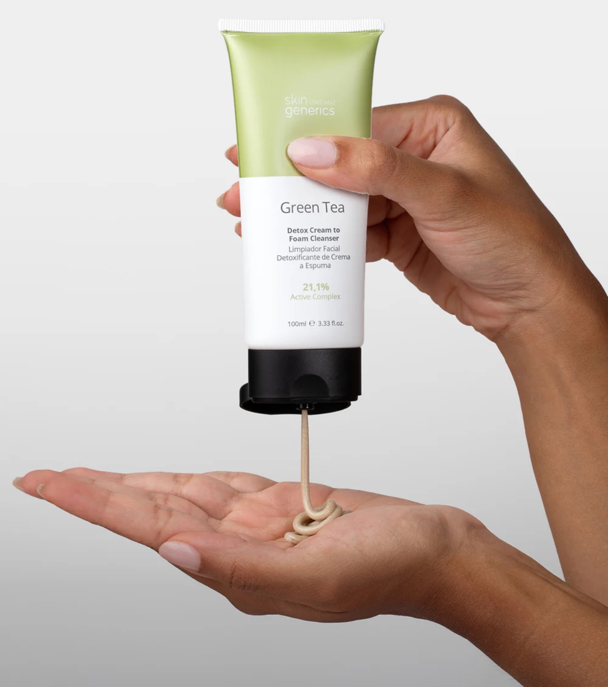 Skin Generics ' innovative foaming cream cleanser effectively removes impurities and waterproof makeup, revealing a fresh, radiant complexion.