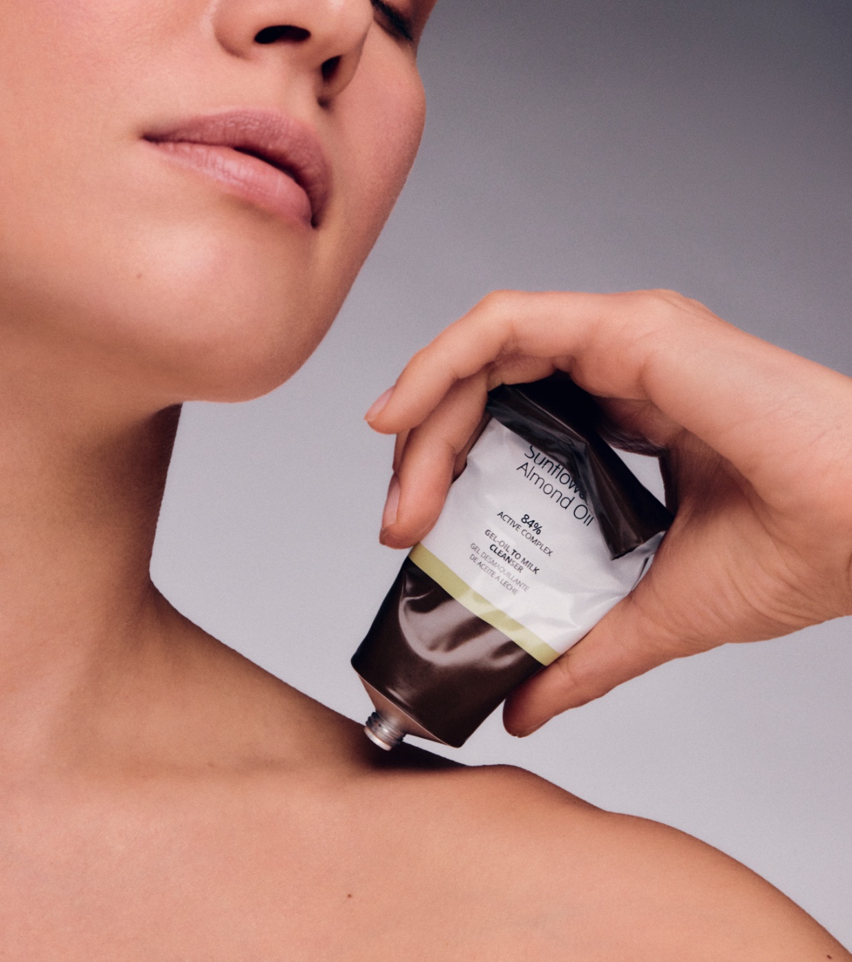 Its innovative hybrid oil-gel texture, which, in contact with water, transforms into an ultra-luxurious milk, removes traces of make-up and impurities with extreme gentleness and efficiency.