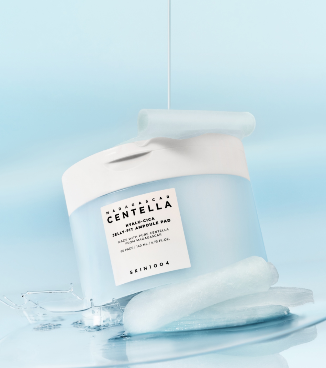 The Jelly-Fit Ampoule Pad from the Hyalu-Cica line by SKIN1004 are toning pads with a jelly-like texture infused in an ampoule rich in multiple types of hyaluronic acid, designed to instantly hydrate, refresh and soothe the skin.