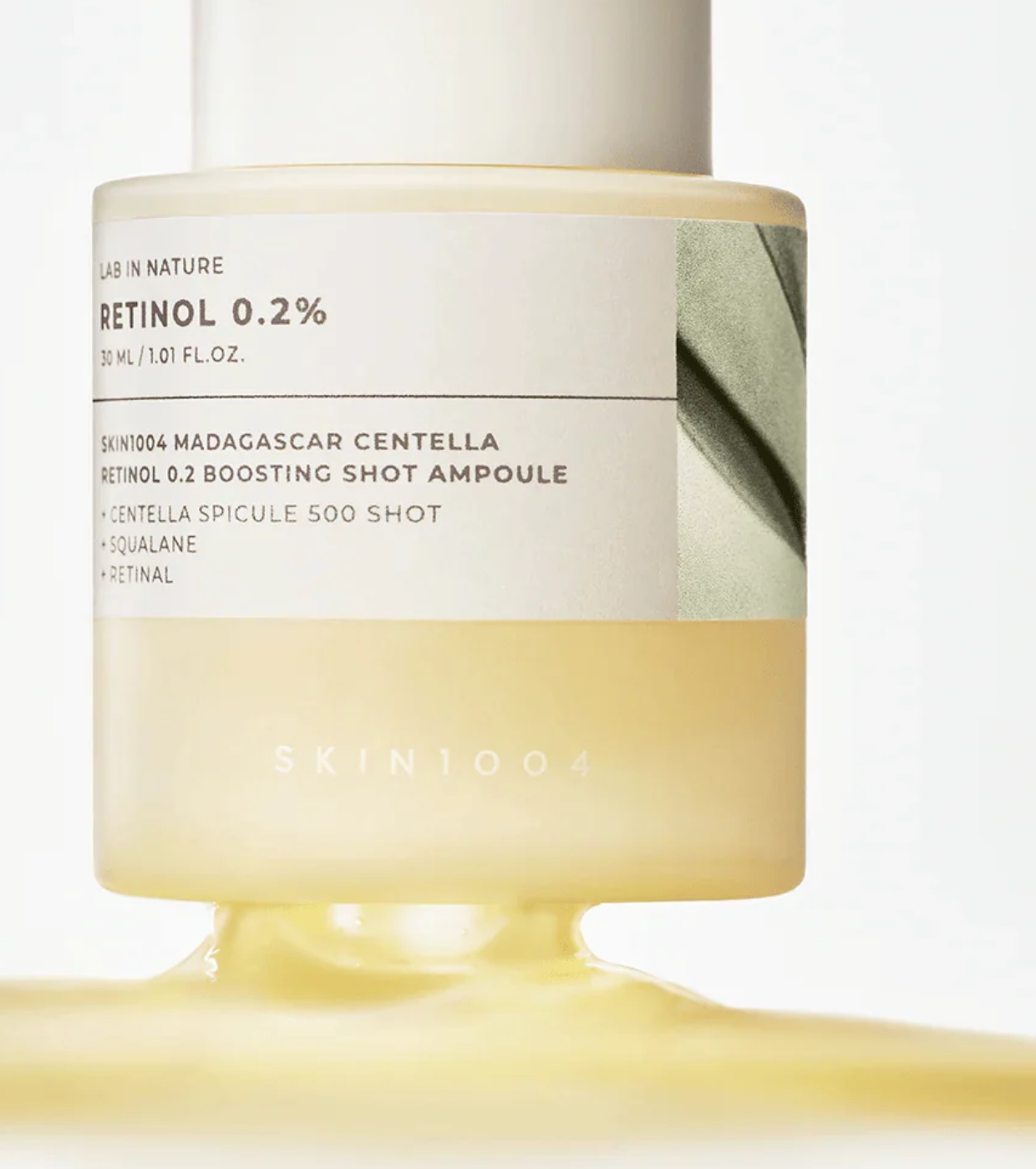 Improve the firmness and radiance of your skin with this intensive Retinal 0,2% ampoule from SKIN1004 with retinol and microspicules, designed to work in depth and enhance the results of facial care.