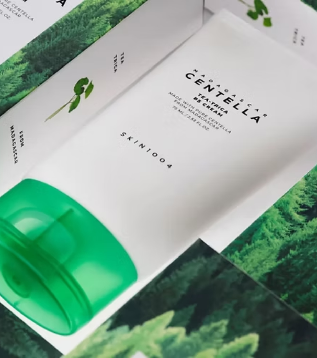 Take care of your sensitive and acne-prone skin with Madagascar Centella Tea-Trica B5 Cream's SKIN1004 , a light facial cream designed to hydrate, soothe and regenerate even the most problematic skin.