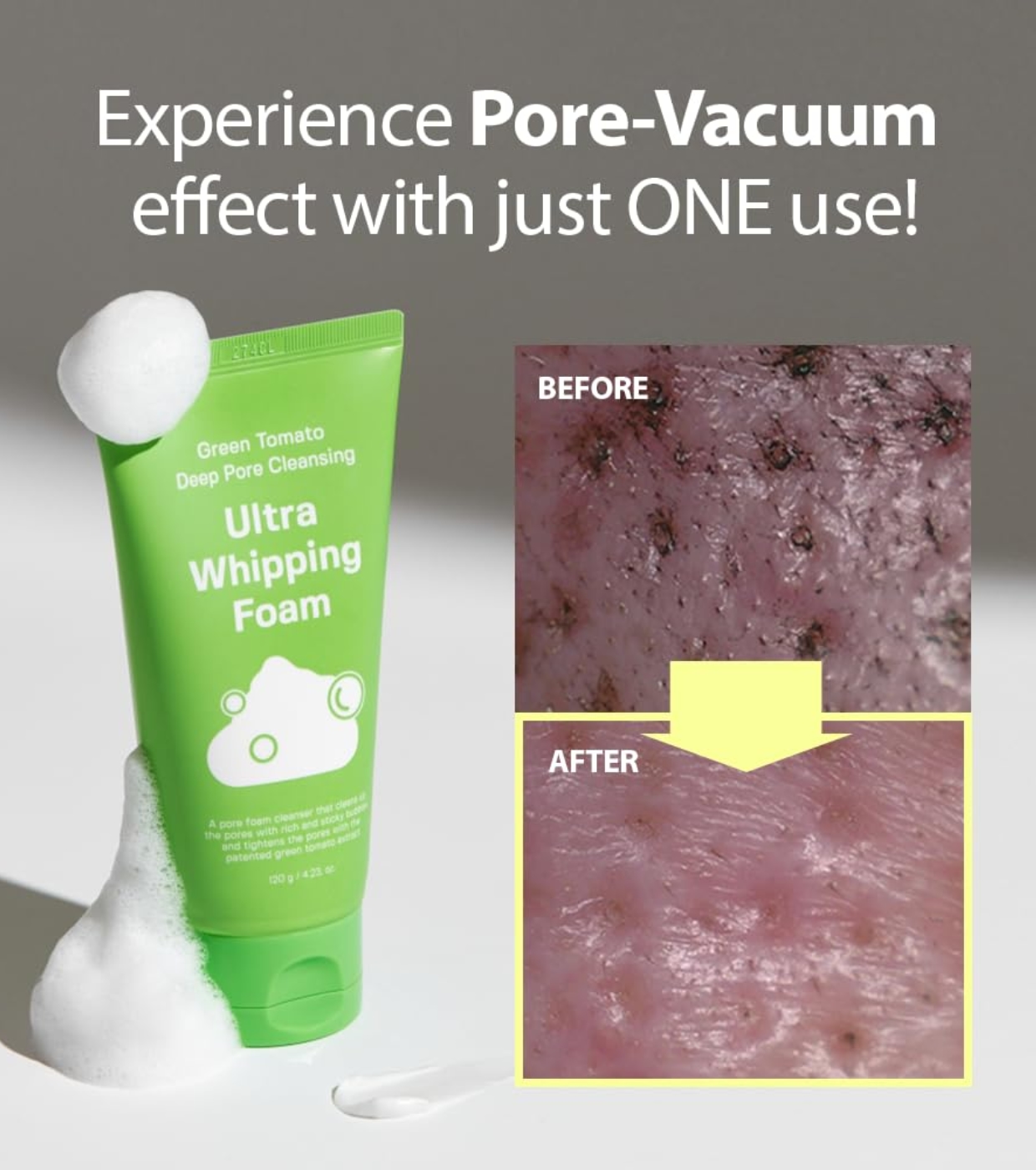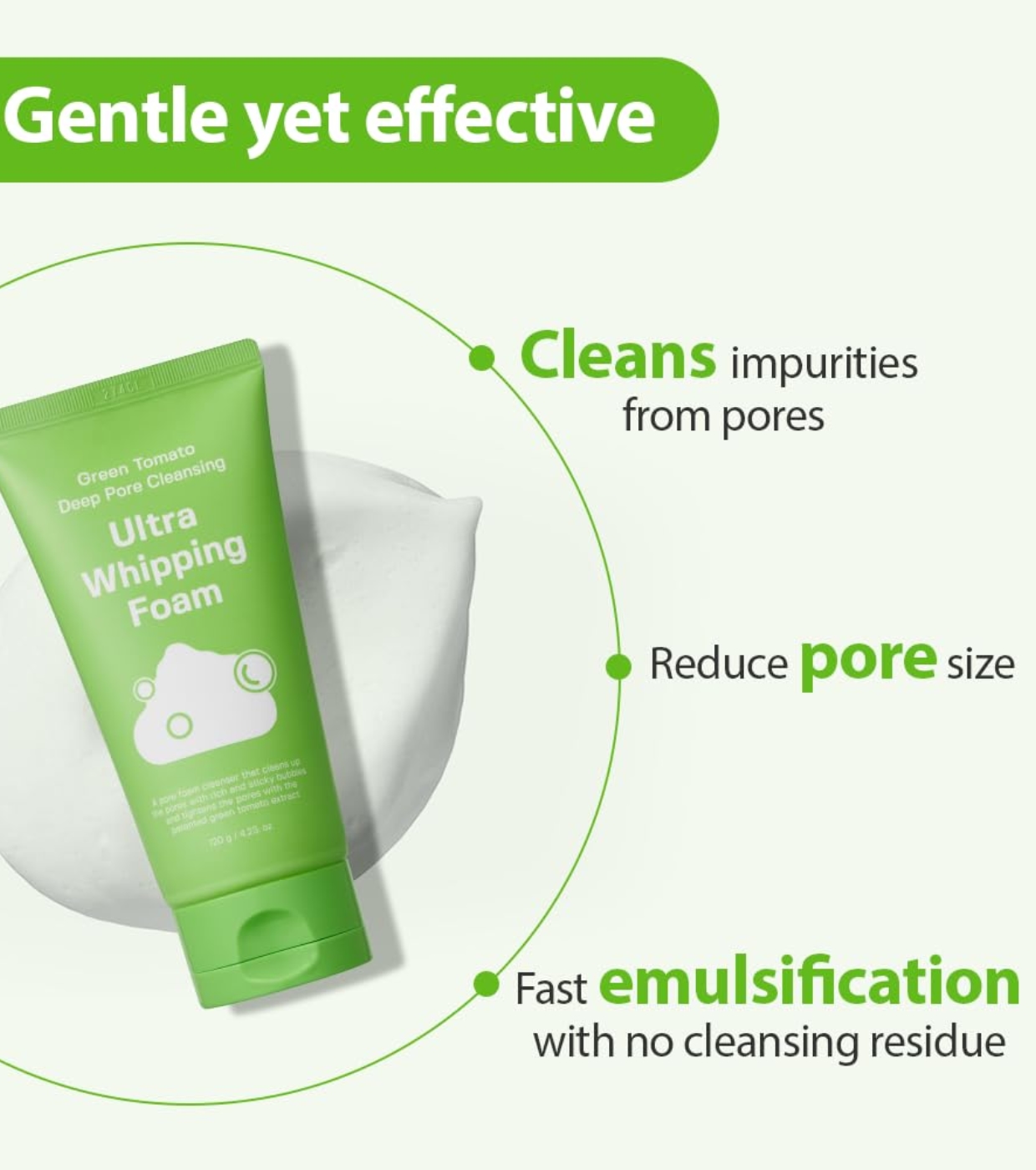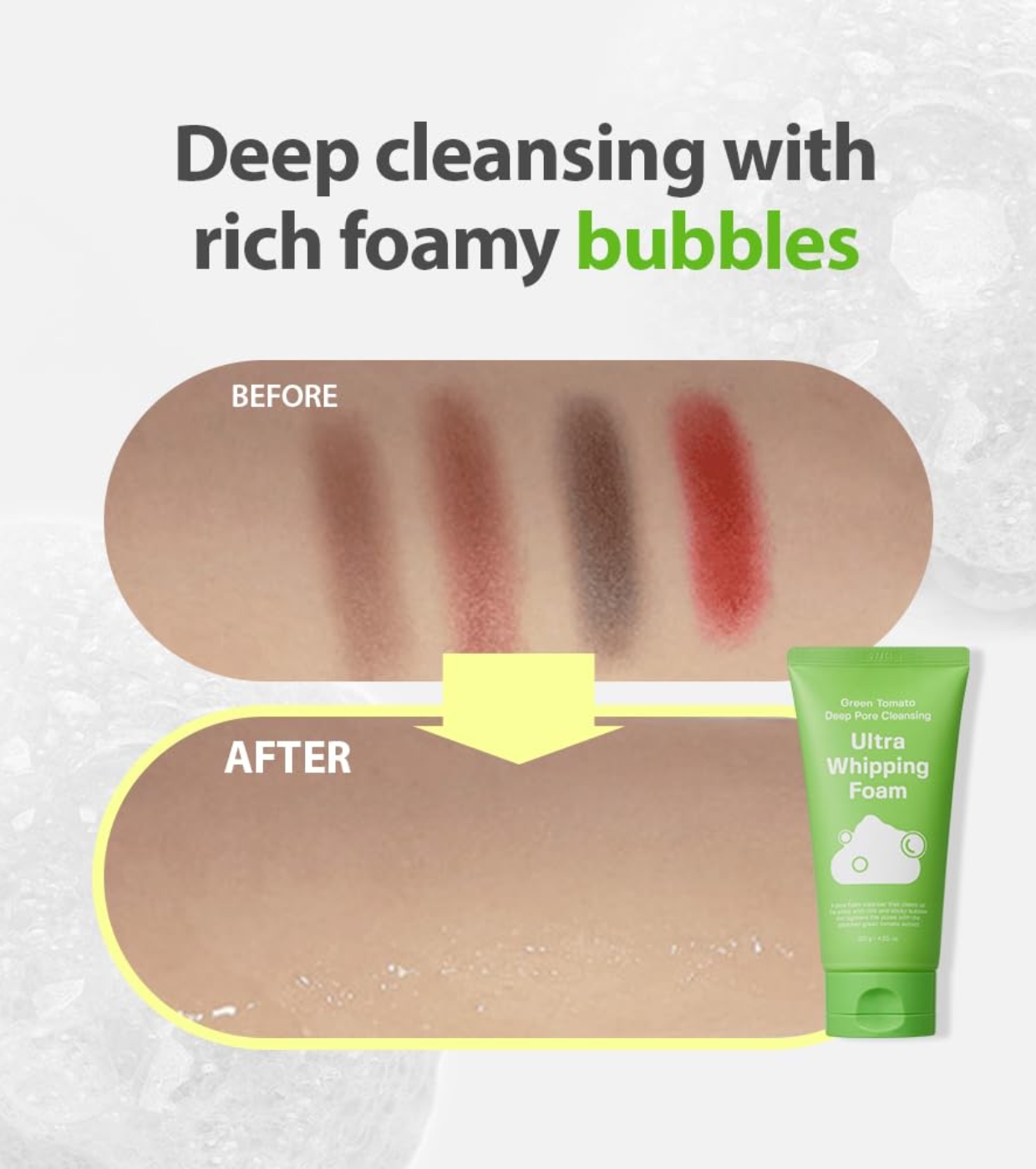 Thanks to its innovative green tomato microbubble technology (1/4000 the size of a pore), it deeply absorbs impurities and sebum residue, leaving skin fresh, clean, and balanced.