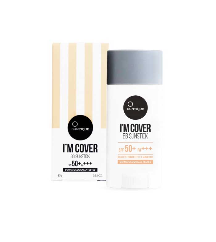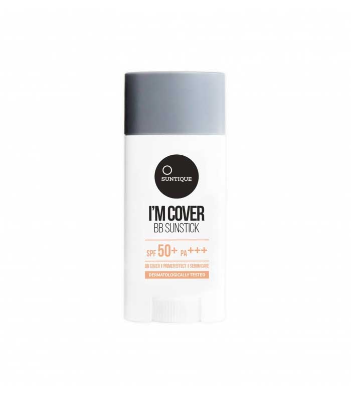 Tinted stick sunscreen I’m Cover BB Sunstick with Suntique SPF 50+.
