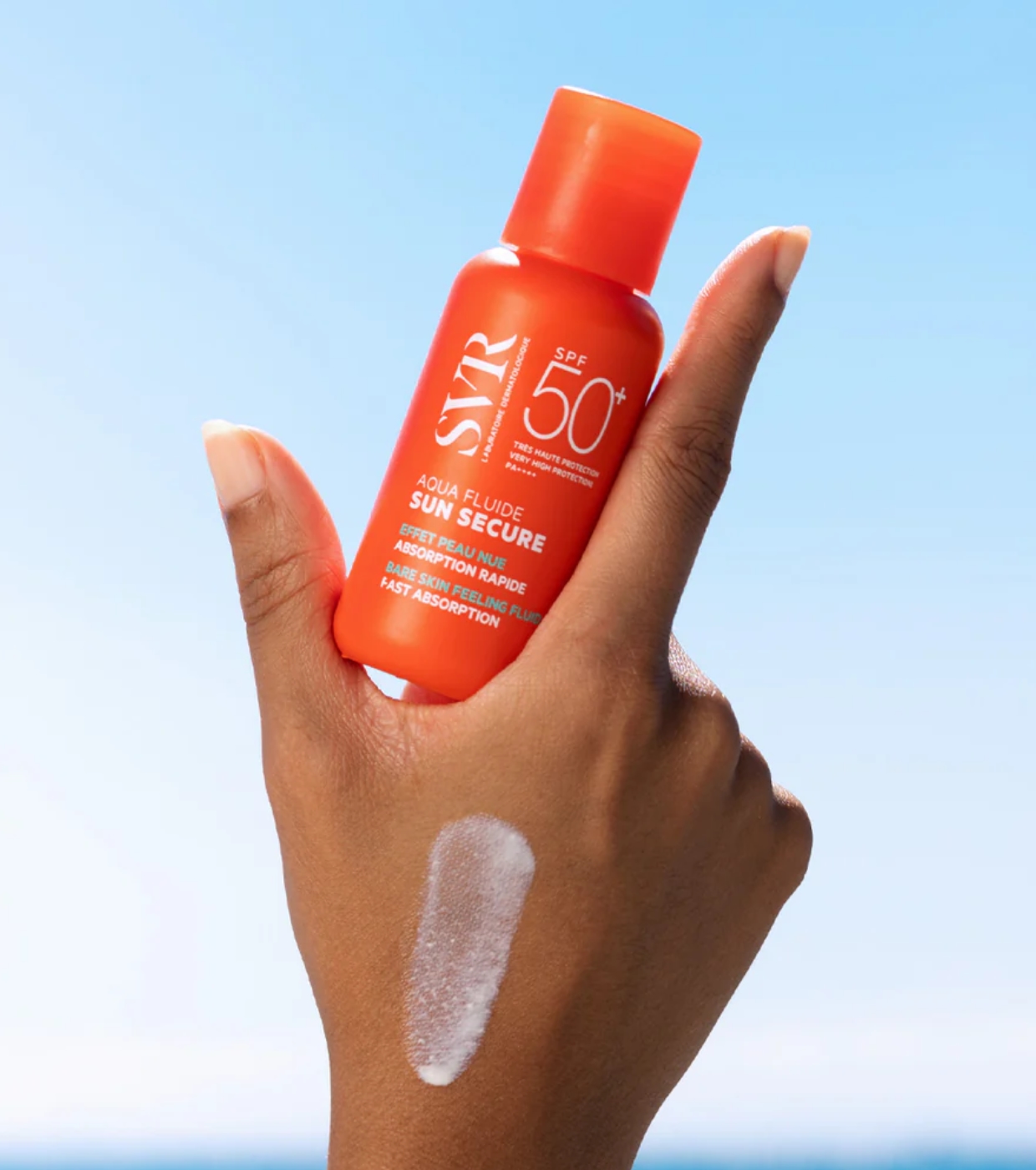 Discover the SUN SECURE Aqua Fluide SPF50+ sunscreen from SVR , a lightweight sunscreen that absorbs quickly and leaves an invisible finish, without feeling greasy or leaving white marks.