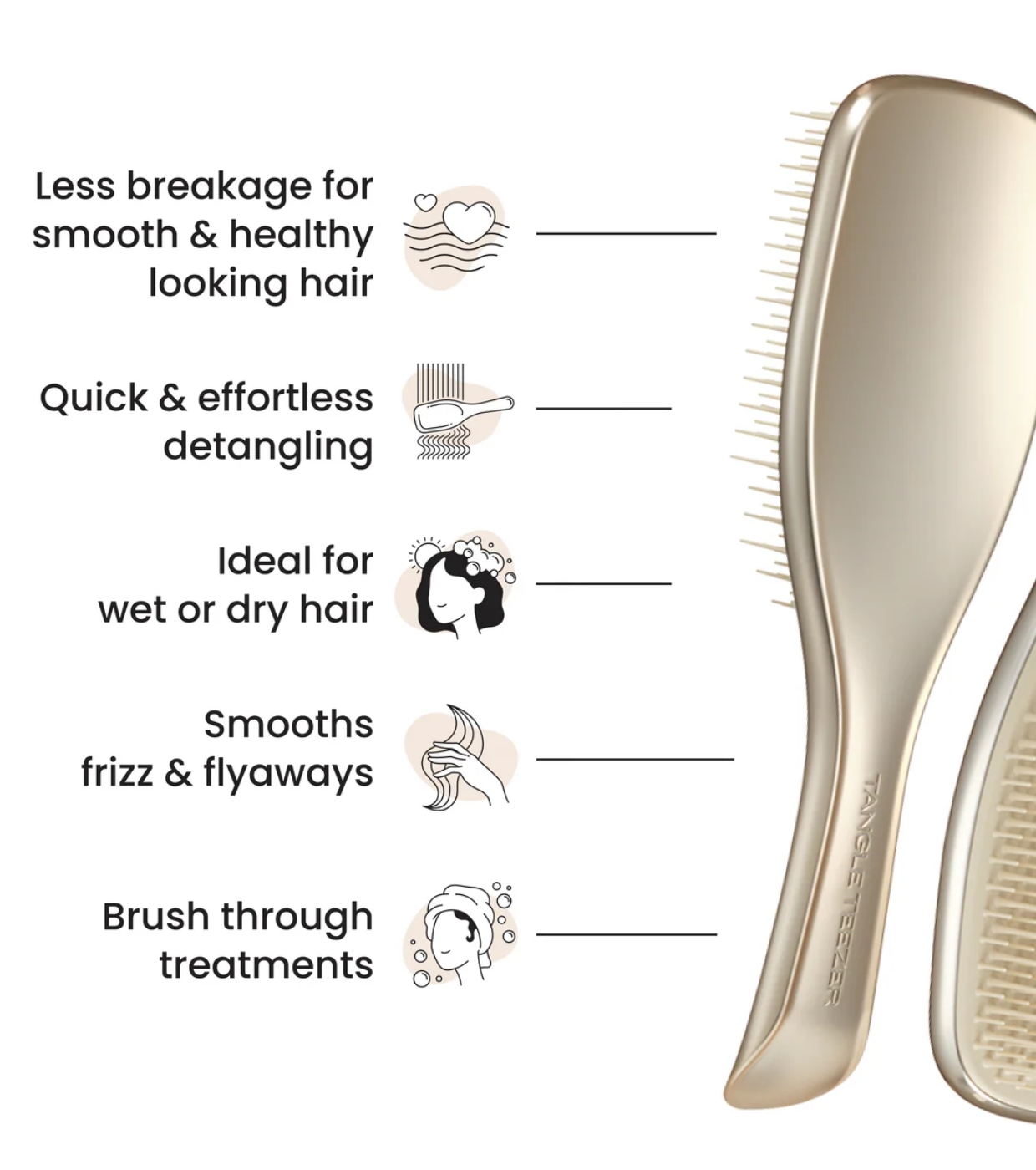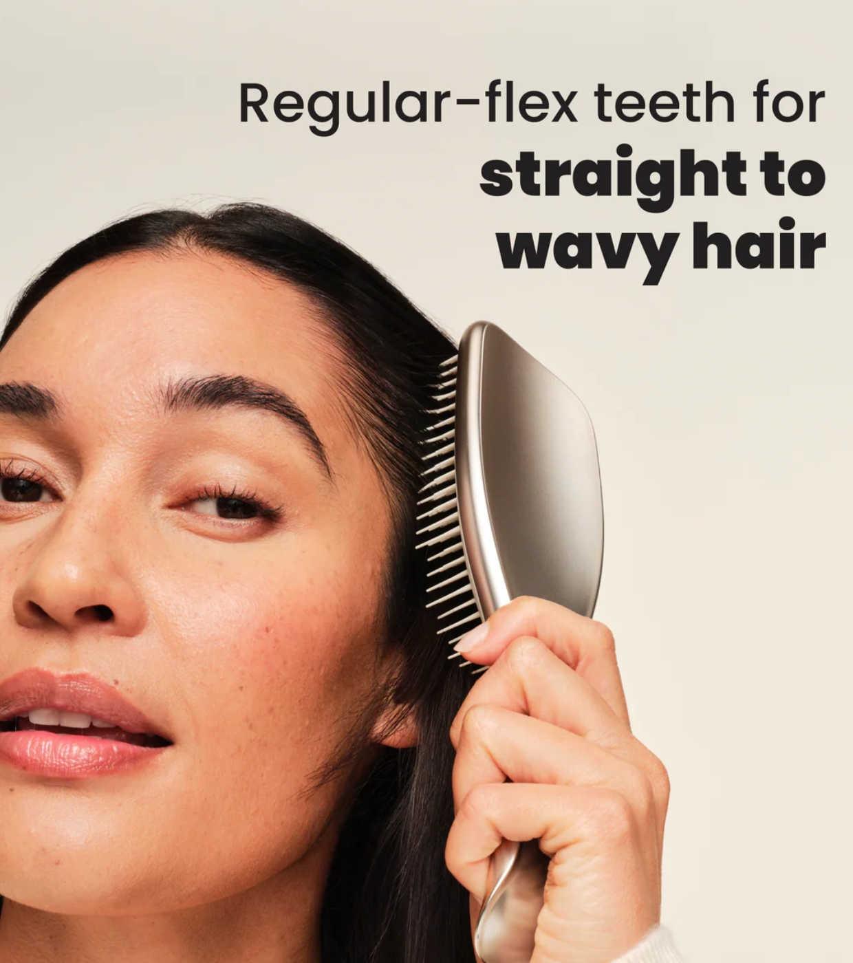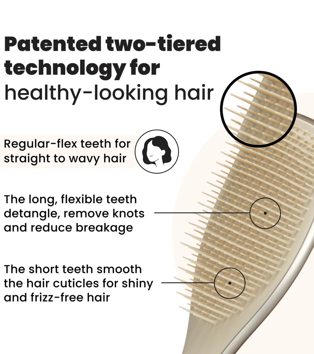 With its 325 flexible, two-tiered bristles, it gently detangles wet or dry hair, minimizing breakage and reducing frizz.