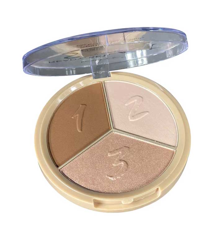 This palette contains 3 shades to define the face, creating lights and shadows to hide or highlight facial features.