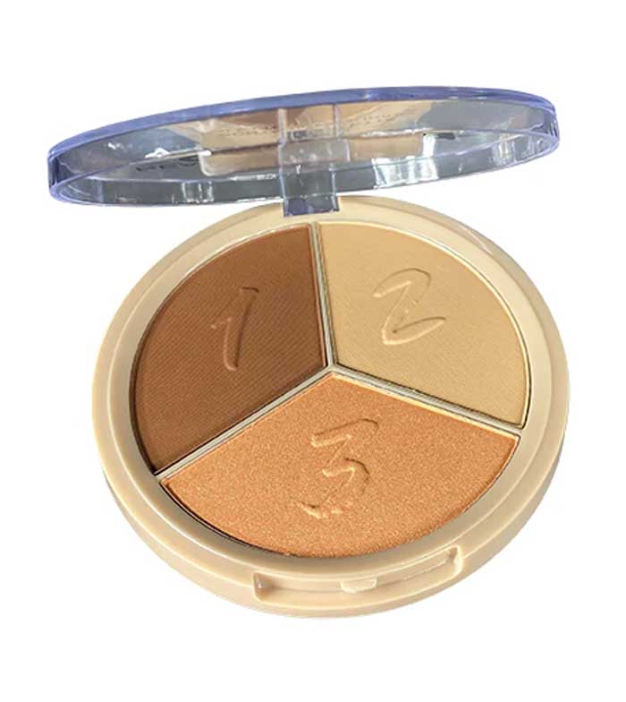 This palette contains 3 shades to define the face, creating lights and shadows to hide or highlight facial features.