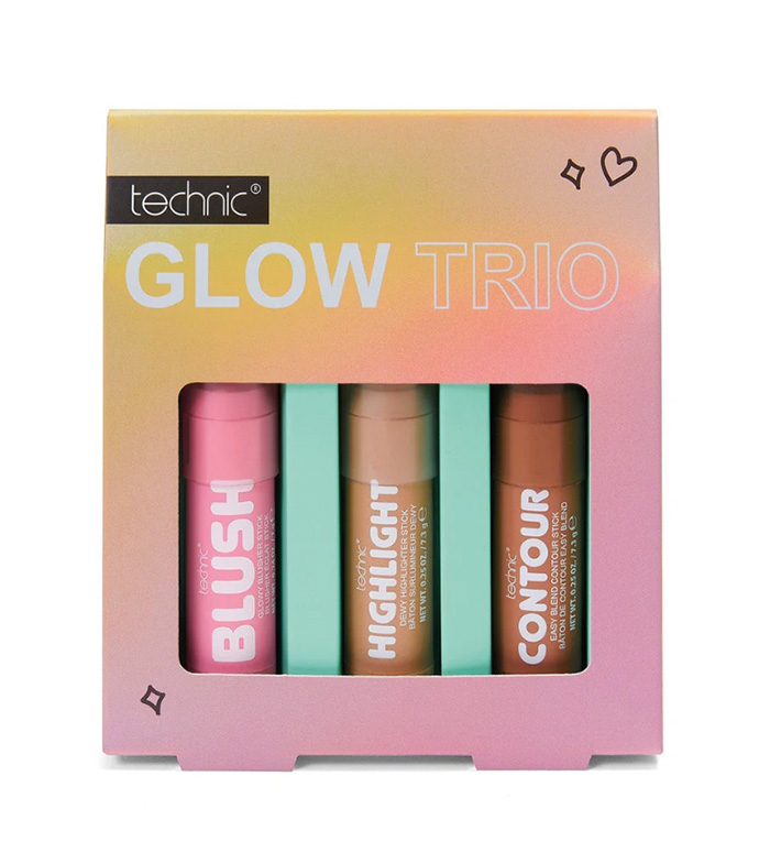 Show off radiant, perfectly defined skin with the Glow Trio face set from Technic , consisting of a buildable glow blush, an easy-to-apply cream highlighter, and an ultra-creamy contour stick.